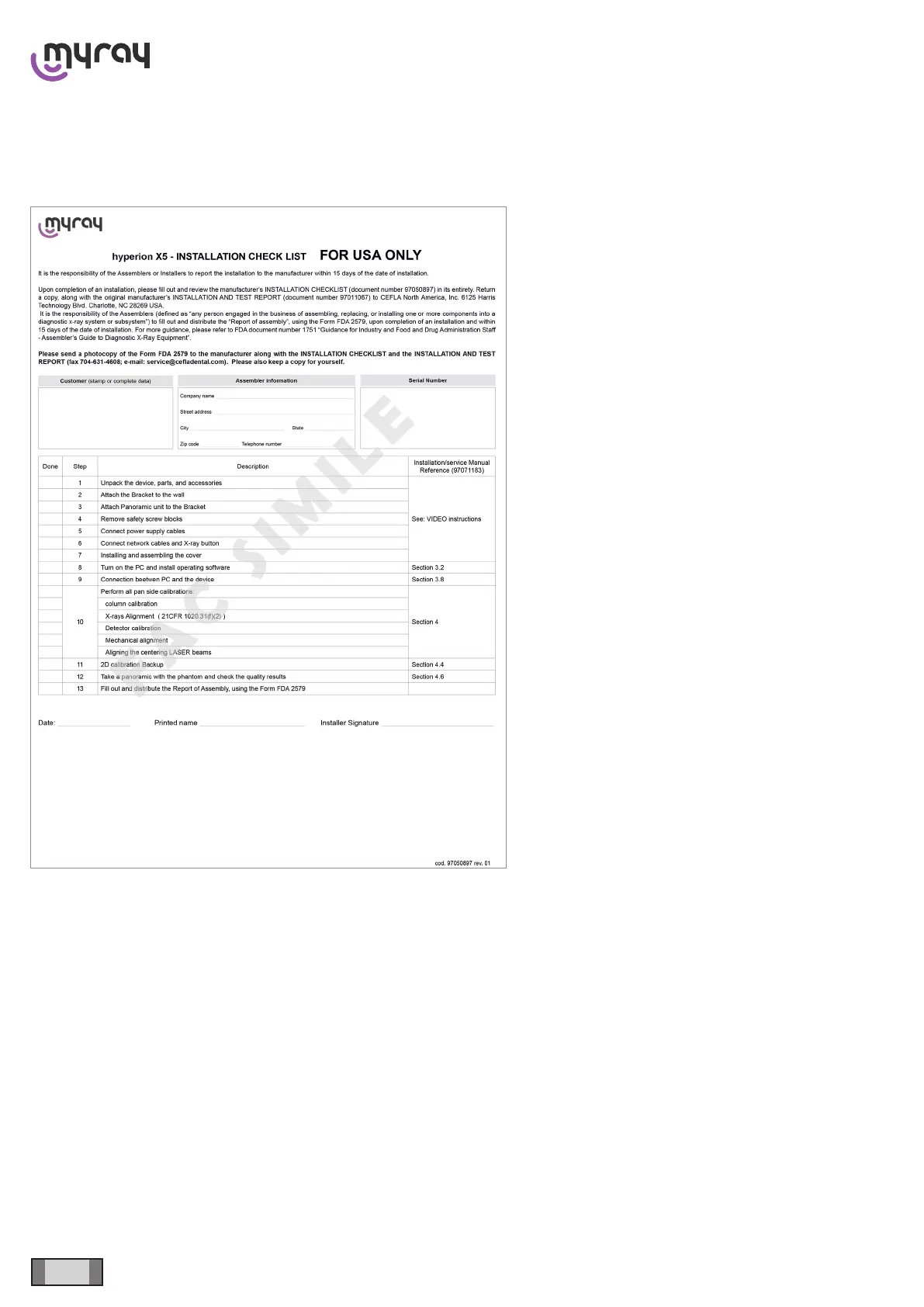 7. INSTALLATION CHECK LIST (FOR USA ONLY)