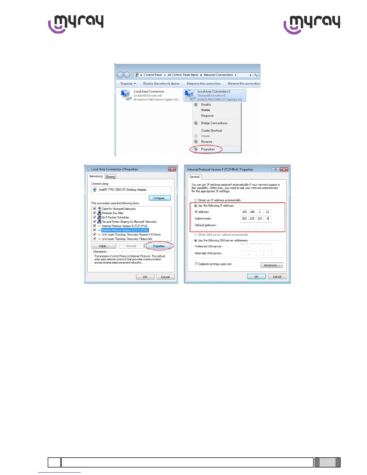Perform the same steps for the second available network connection (Intel PRO 1000), setting the IP address as