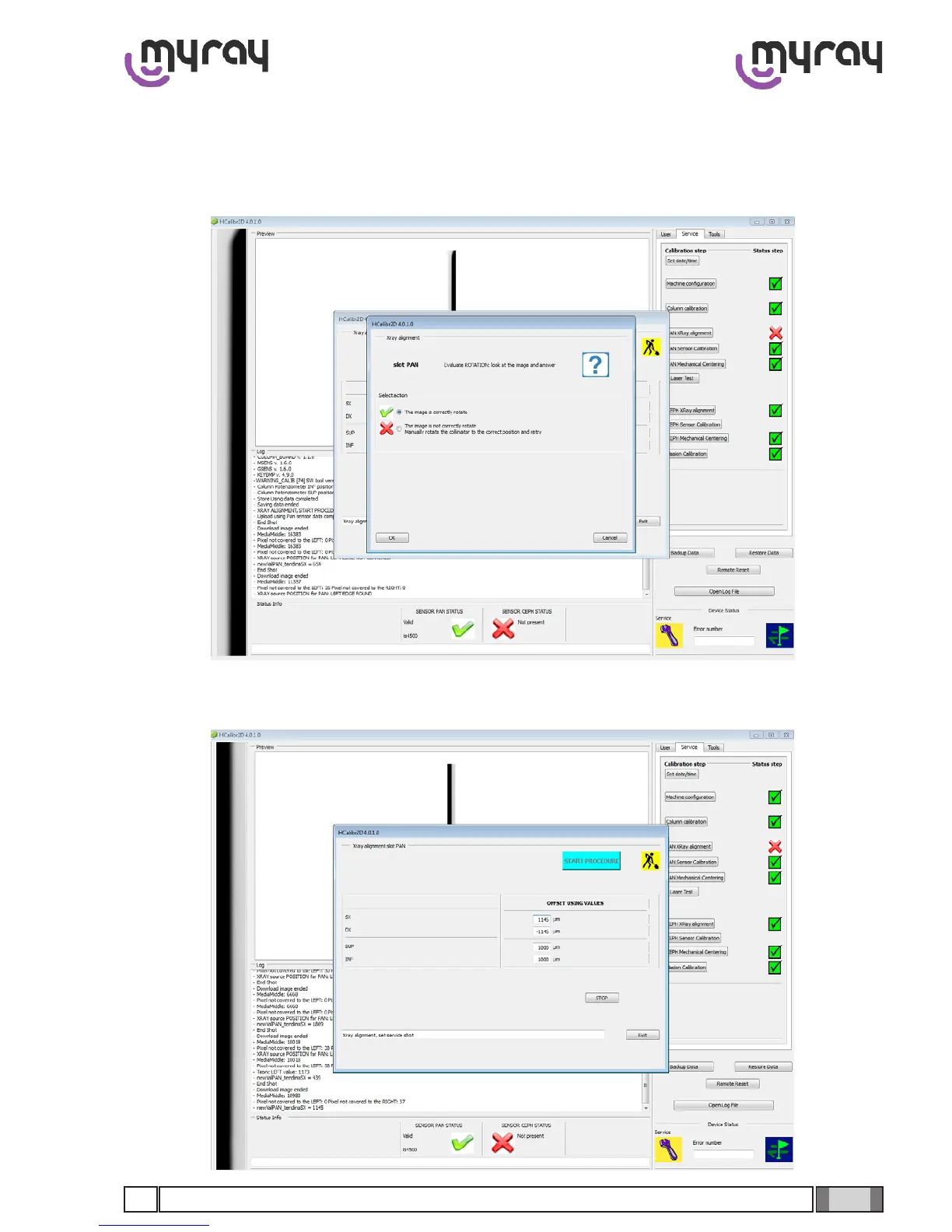 select “the image is correctly rotate” to proceed with the x-ray beam alignment (from this point the procedure is auto-