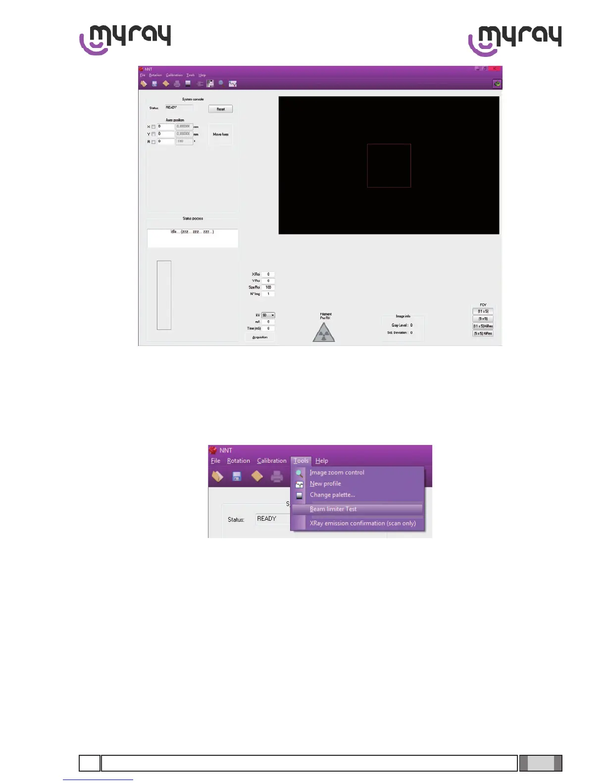 Press the “Reset” button, then select the “Tools ->Beam Limiter Test” menu.