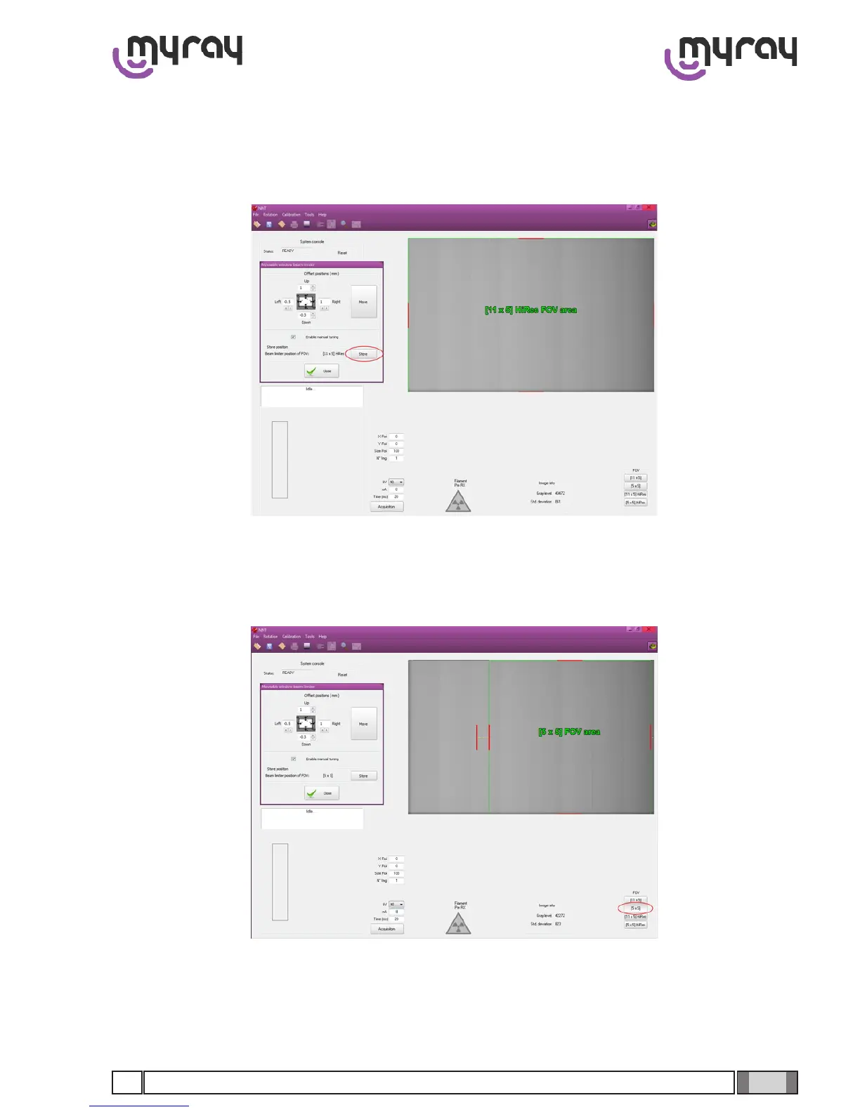 Repeat the previous steps until the acquired image is correct. Once done select the “Store” button to save the current