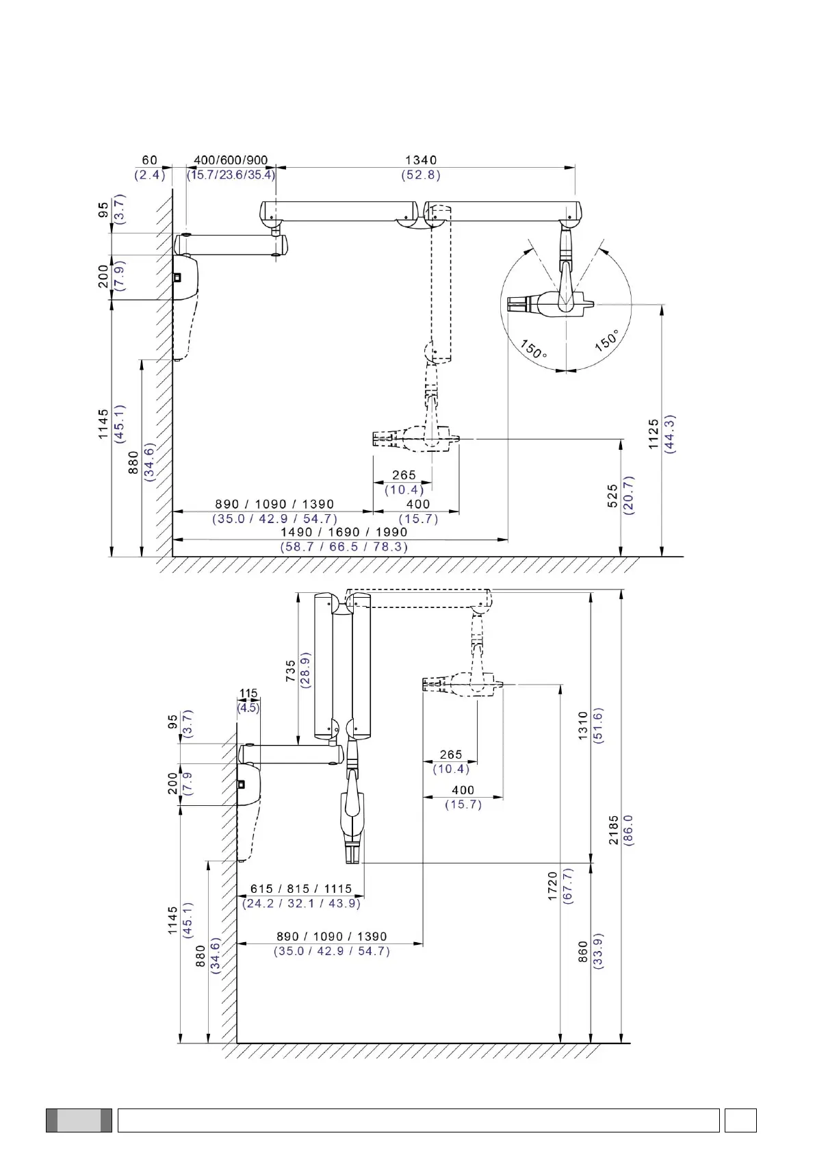 Toutes les dimensions sont exprimées en millimètres (pouces).