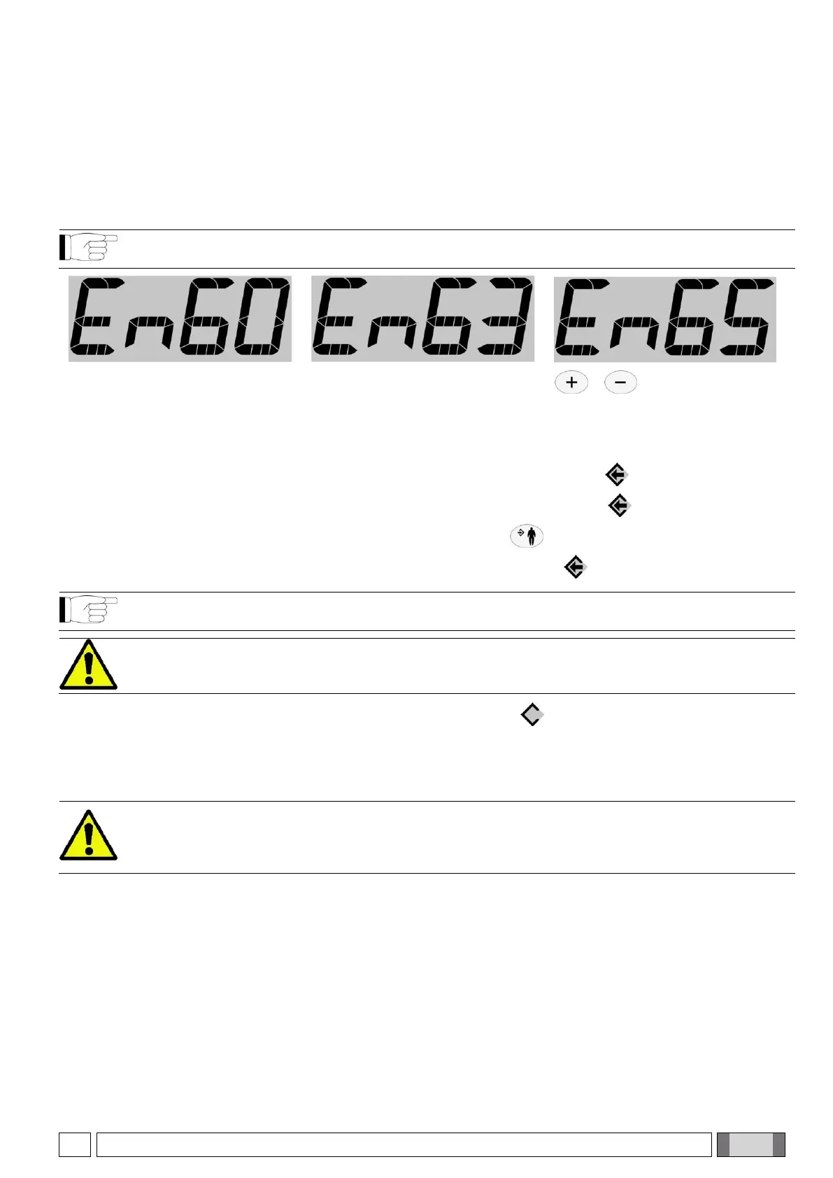 segundo, la modalidad operativa (En60, EN63 o EN65) activada para dicha selección.