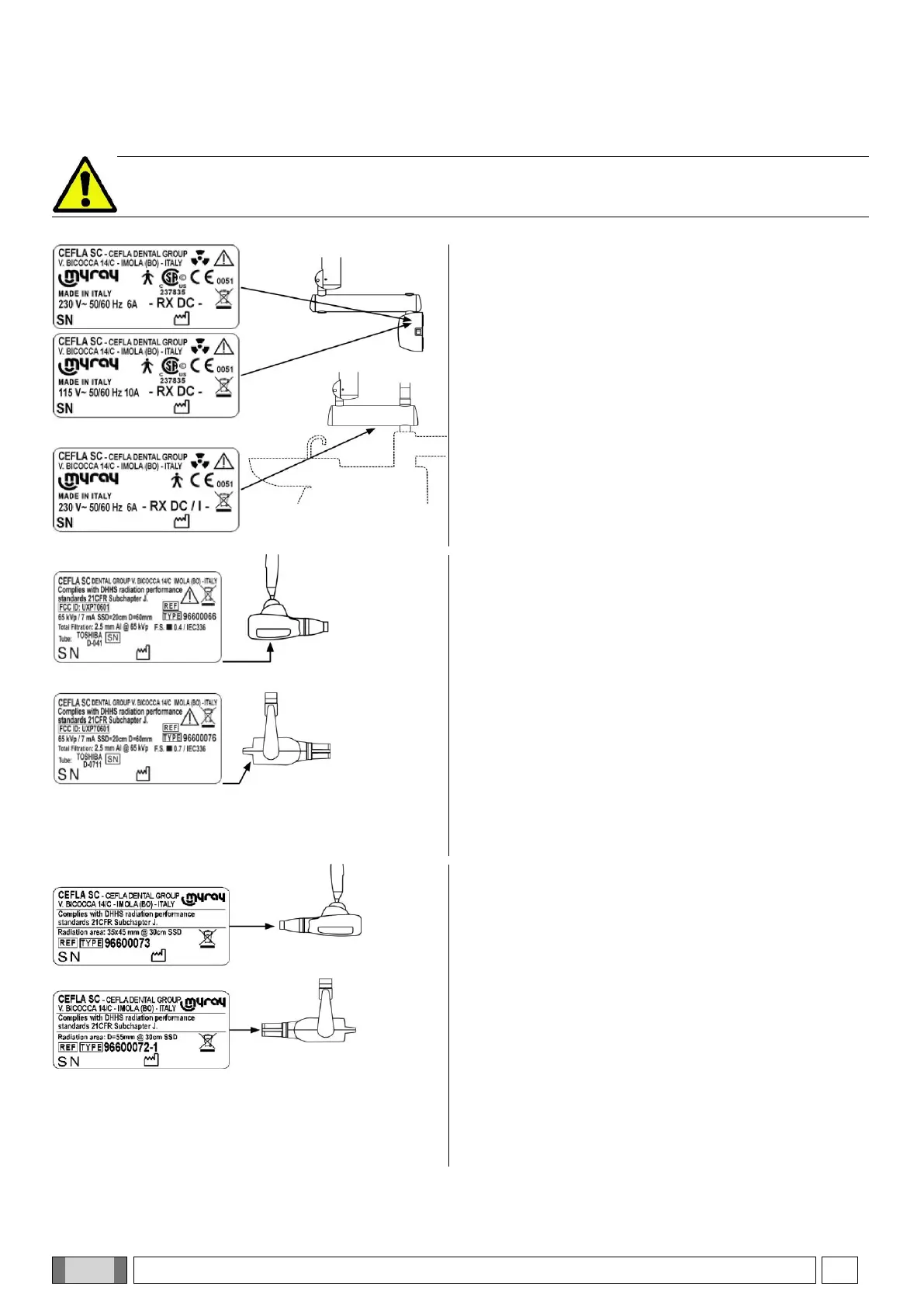 - Modelo y número de serie del tubo de rayos X