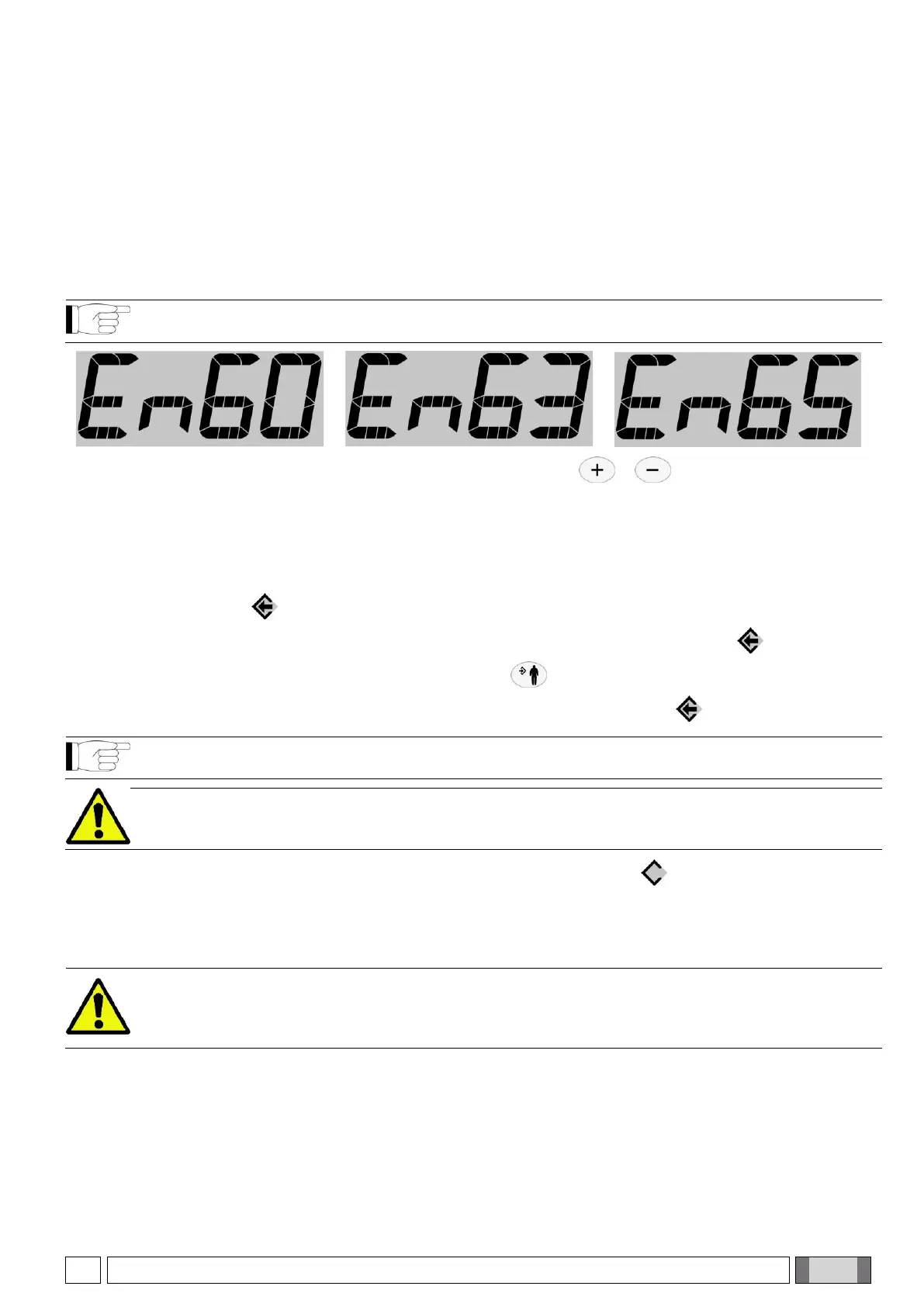 на дисплее отображается режим работы (En60, En63 или En65), активированный для такого выбора.