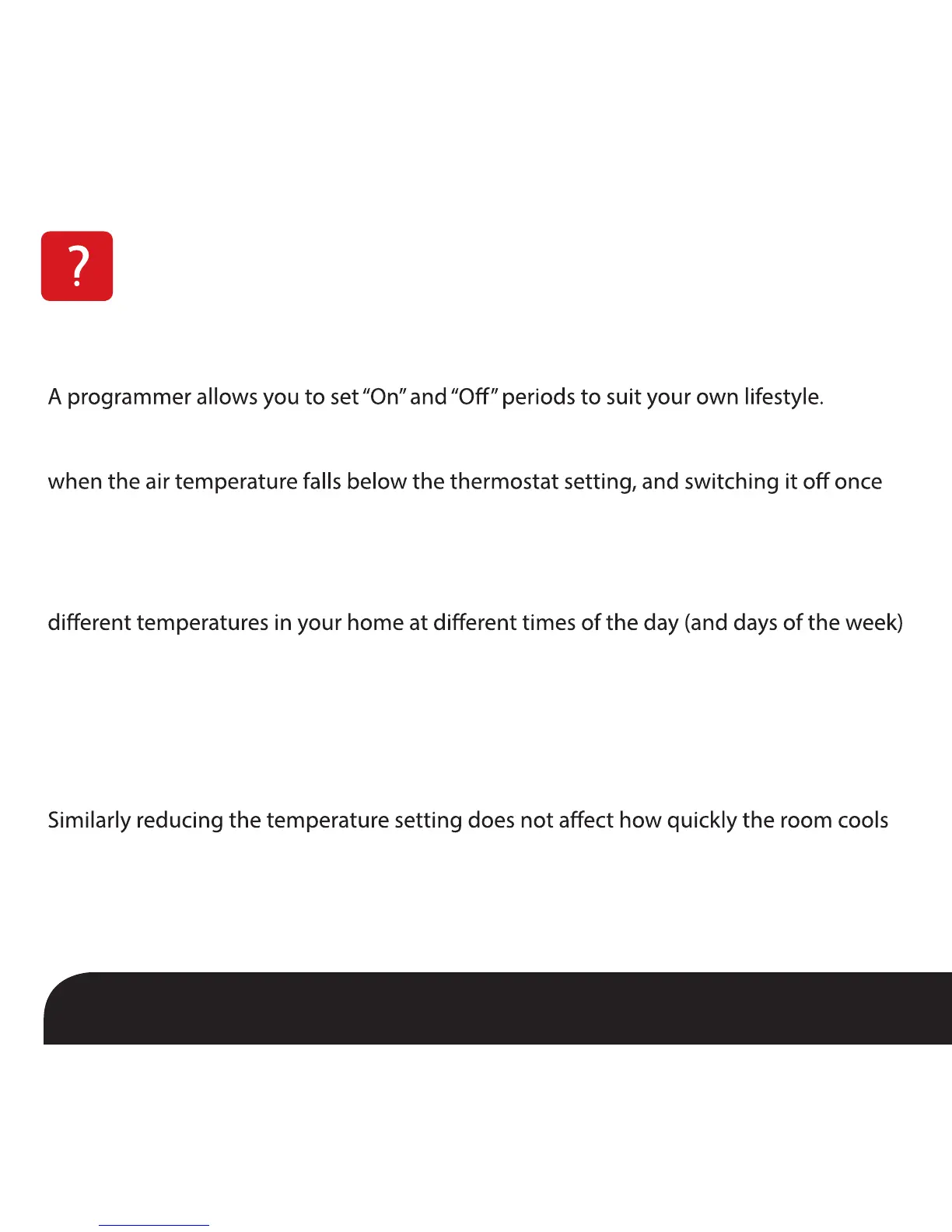 Setting a programmable room thermostat to a higher temperature will not make the