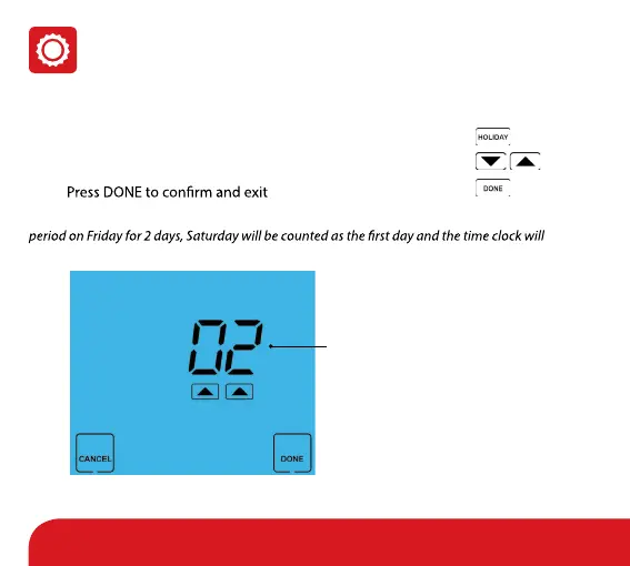 To cancel a Holiday setting, reduce the holiday time to 00 days.