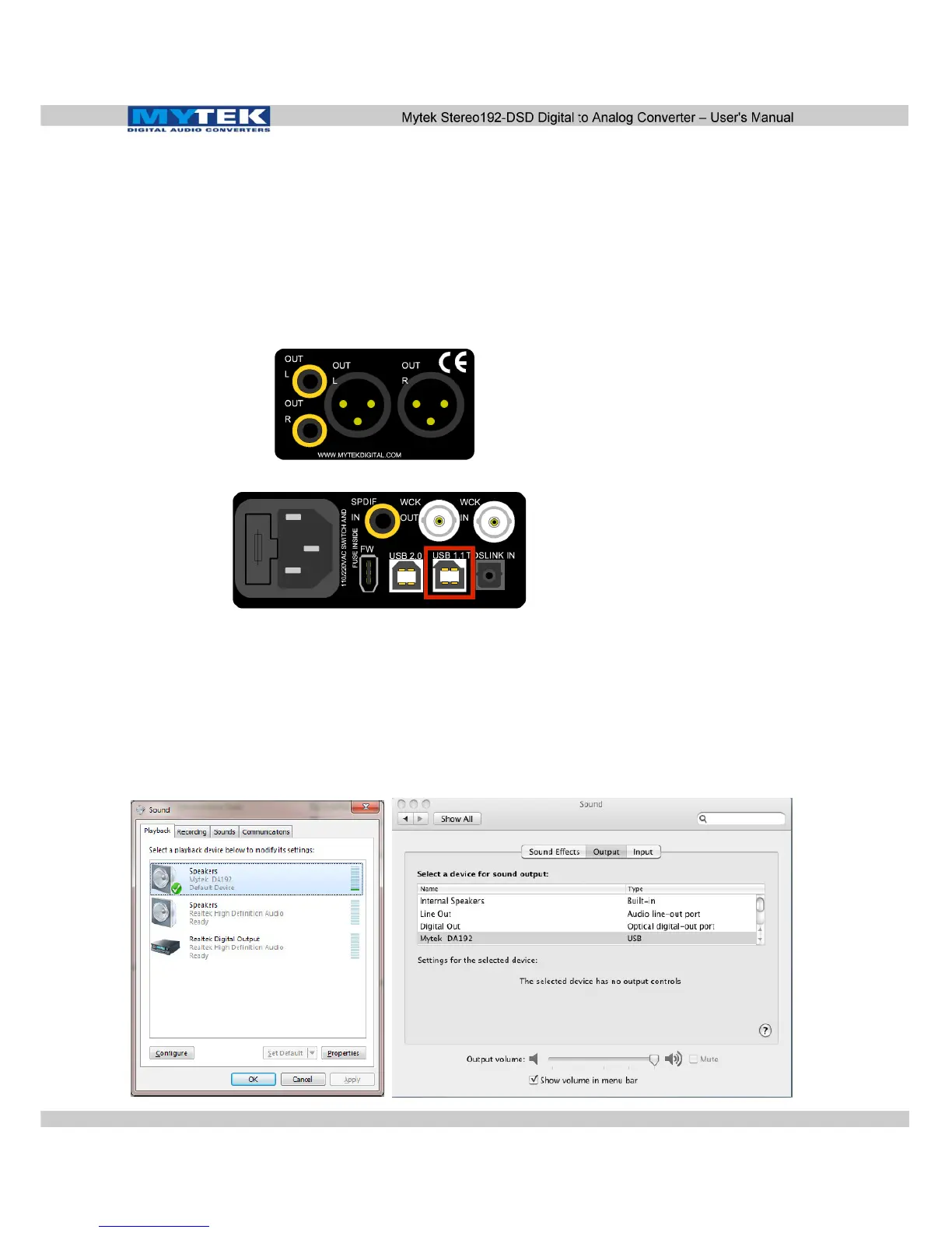 4. DAC comes as default set to USB1.1 input. Select Mytek as the