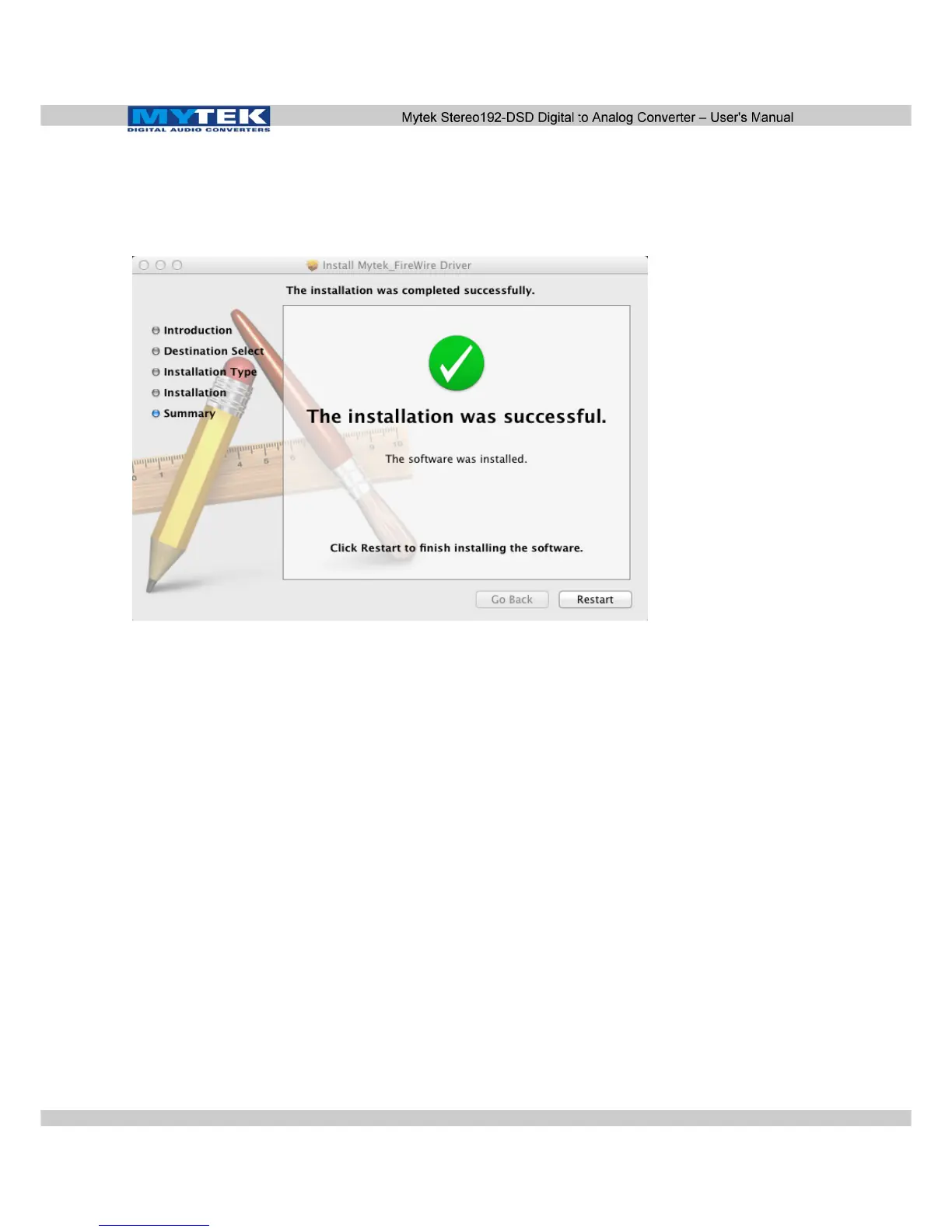 complete Mytek FireWire Driver Installation.