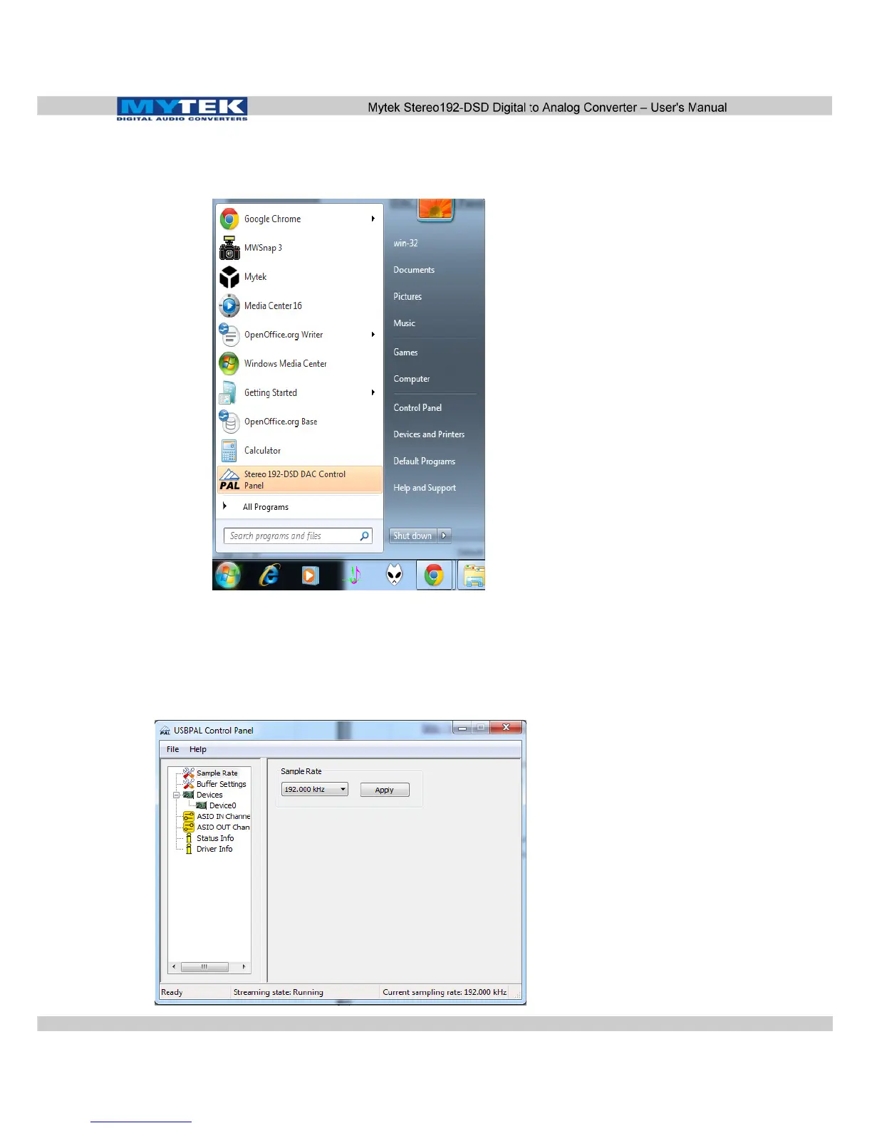 10. Confirm installation by launching the Stereo 192-DSD DAC