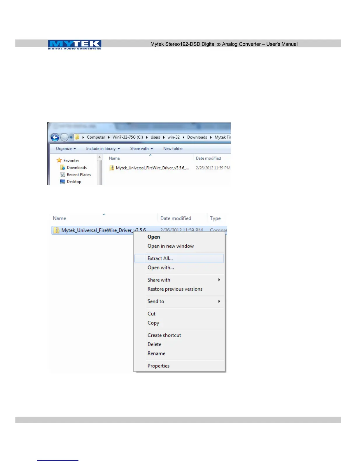 2. Extract the contents of the Mytek_Universal_Firewire_ Driver_