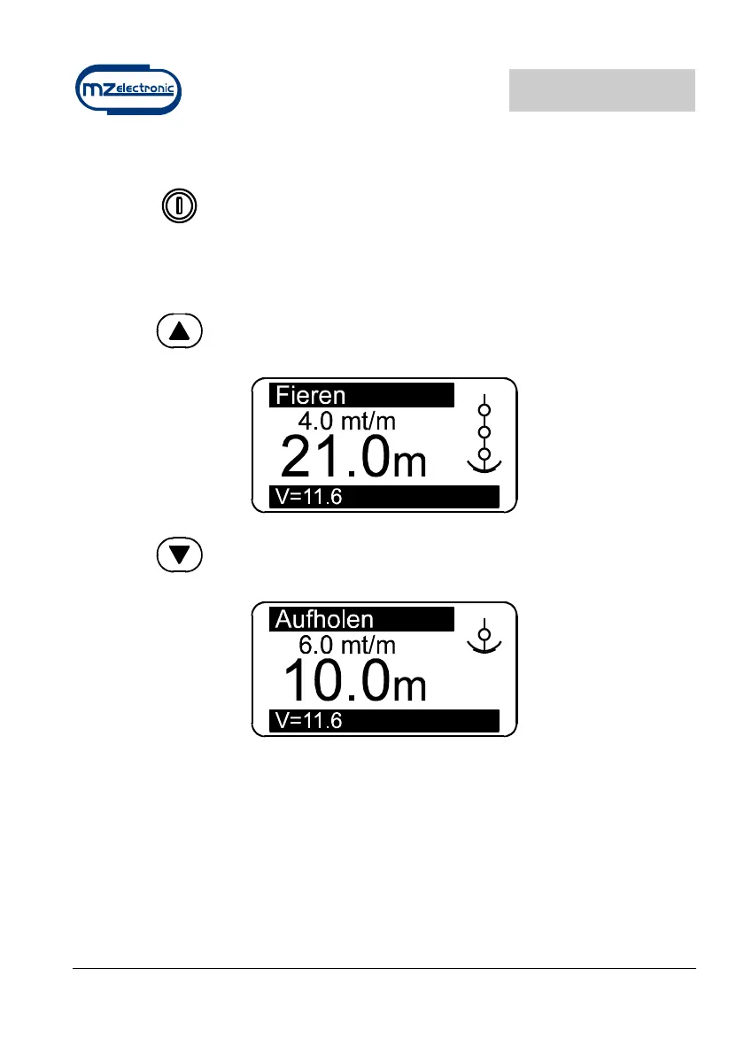 (UP) steuert das Lichten des Ankers.