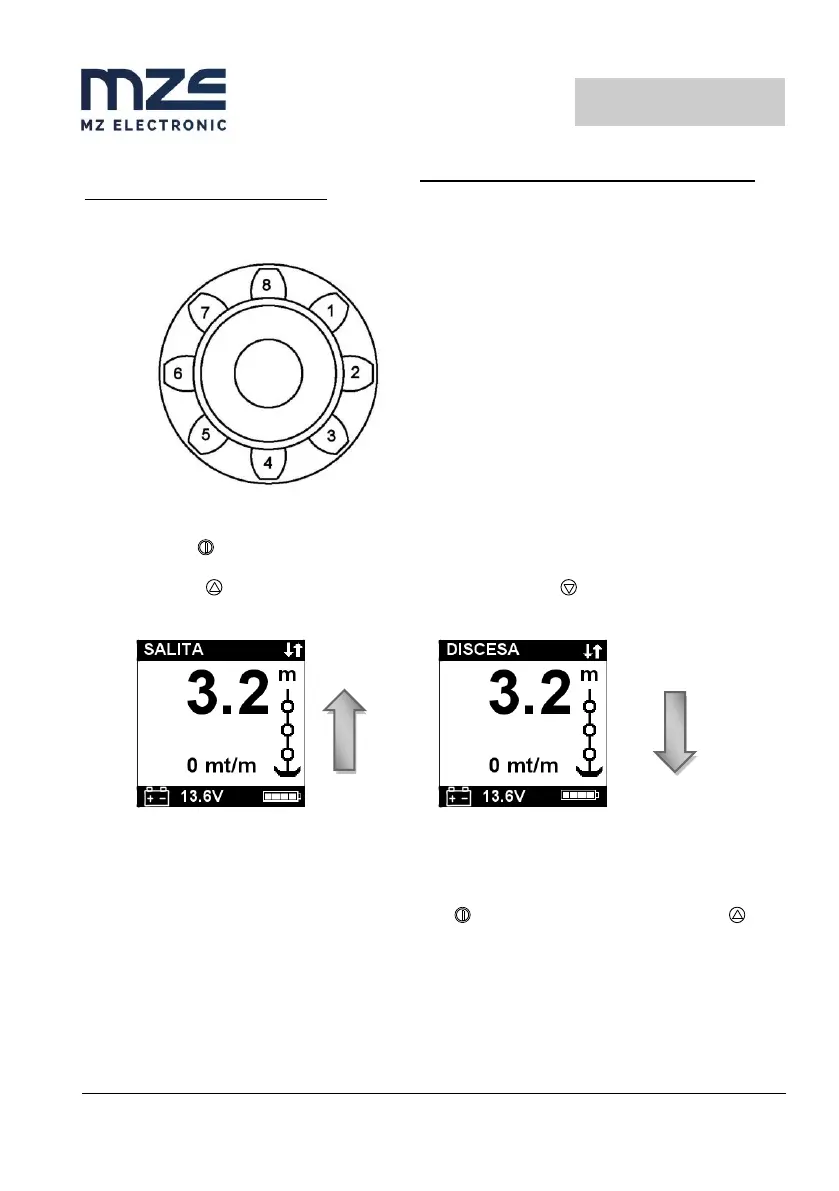Premendo il tasto (UP) si comanda la salita dell’ancora e con il tasto (DOWN) si cala l’ancora.