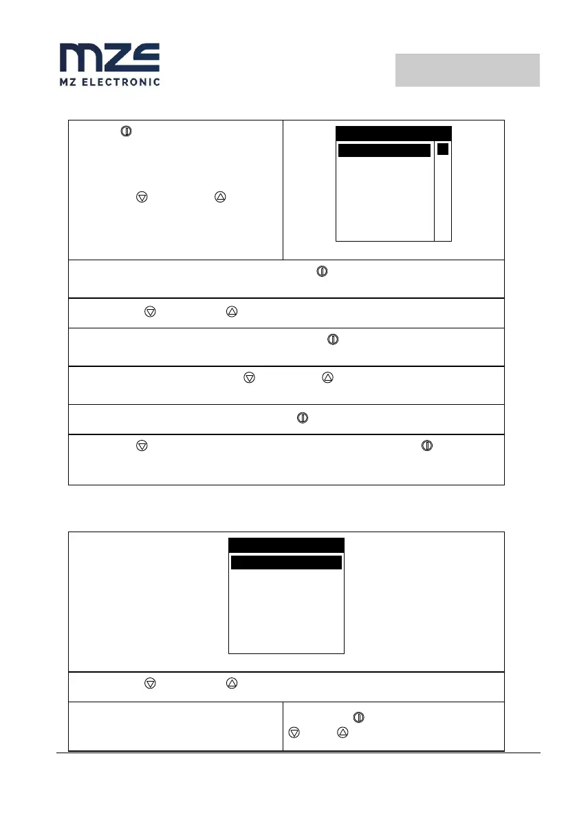 Mit den Tasten (DOWN) oder (UP) zu den verschiedenen Parametern springen.