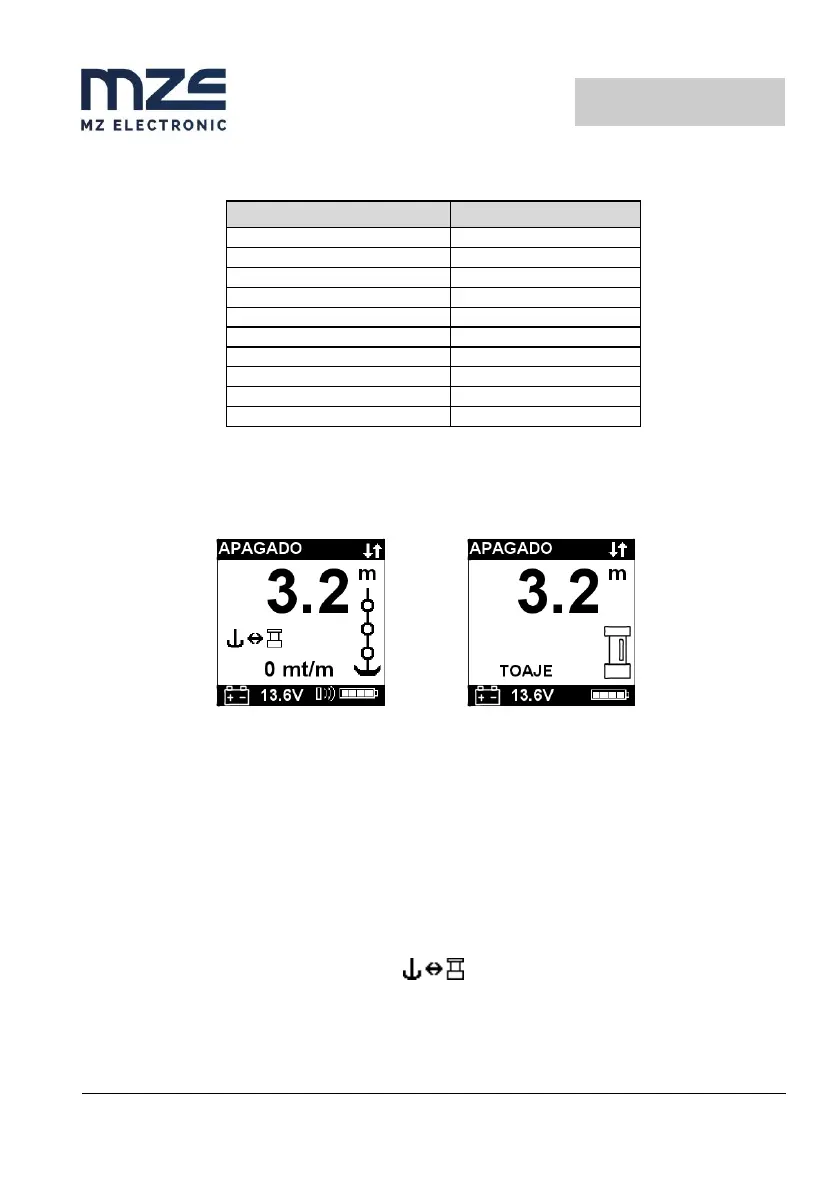 cadena bajada, el cálculo de la velocidad del ancla y posiblemente la señal de error del sensor en caso