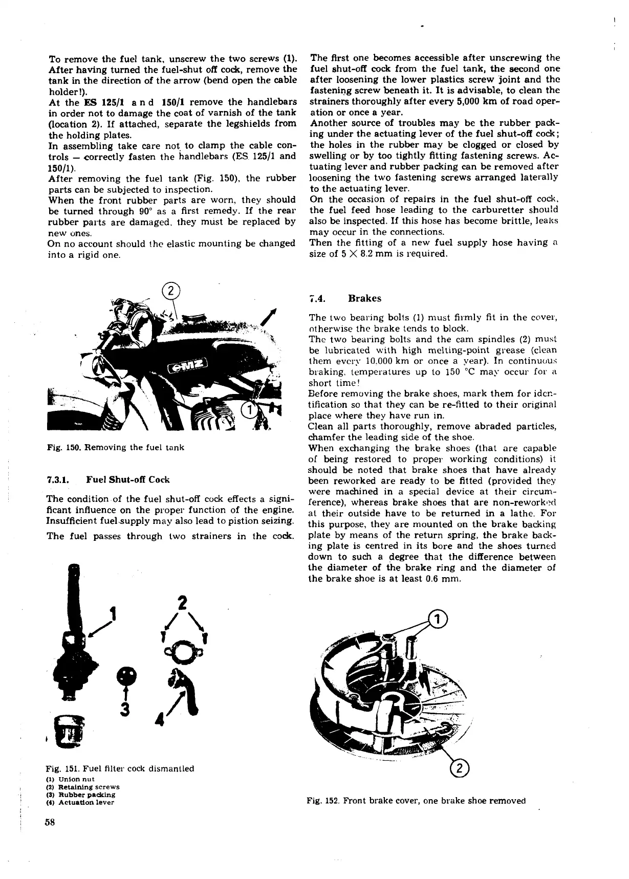 After removing the fuel tank (Fig. 150), the rubber