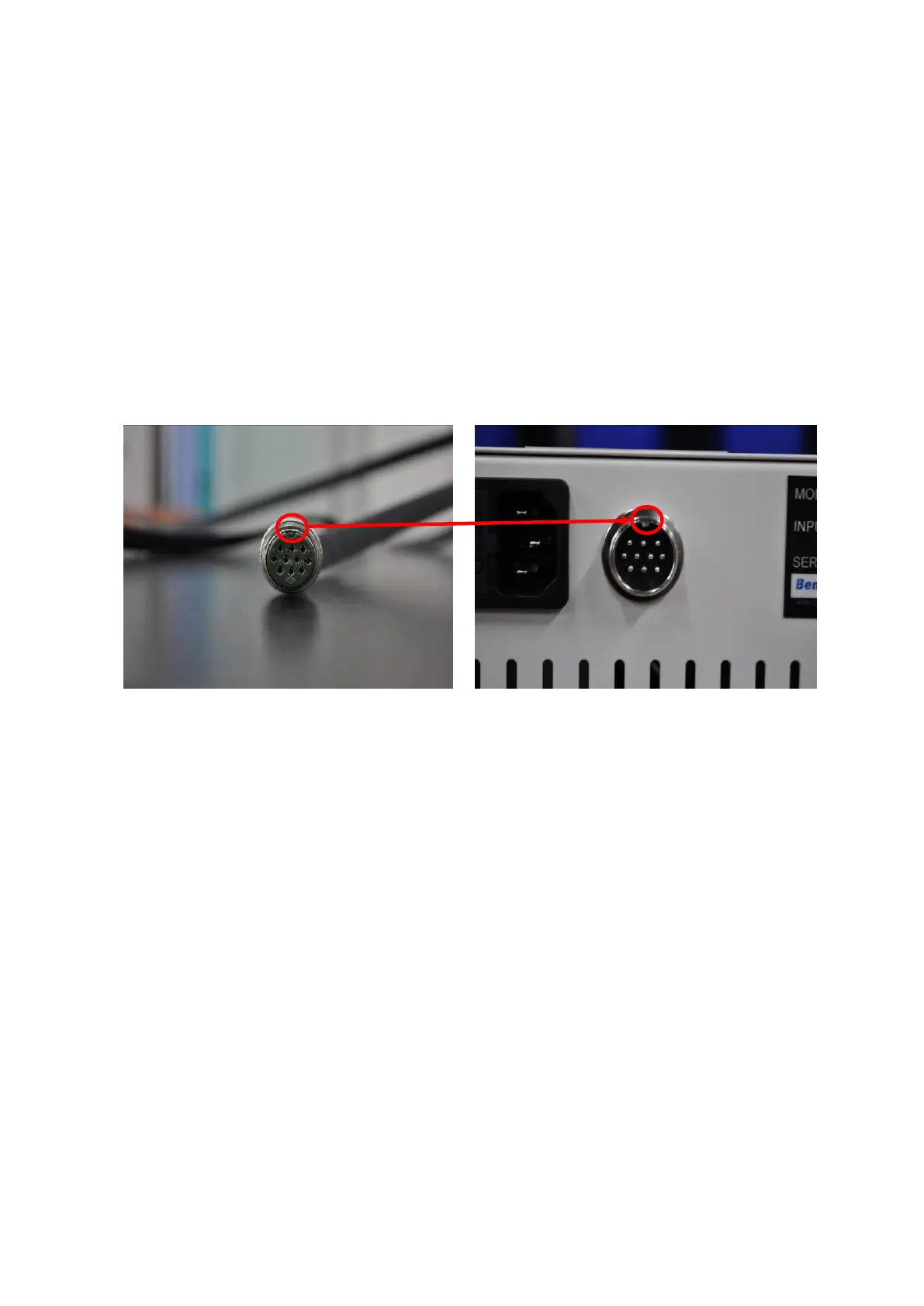 please match cable connector's hole with the pin of connector in equipment. Do not