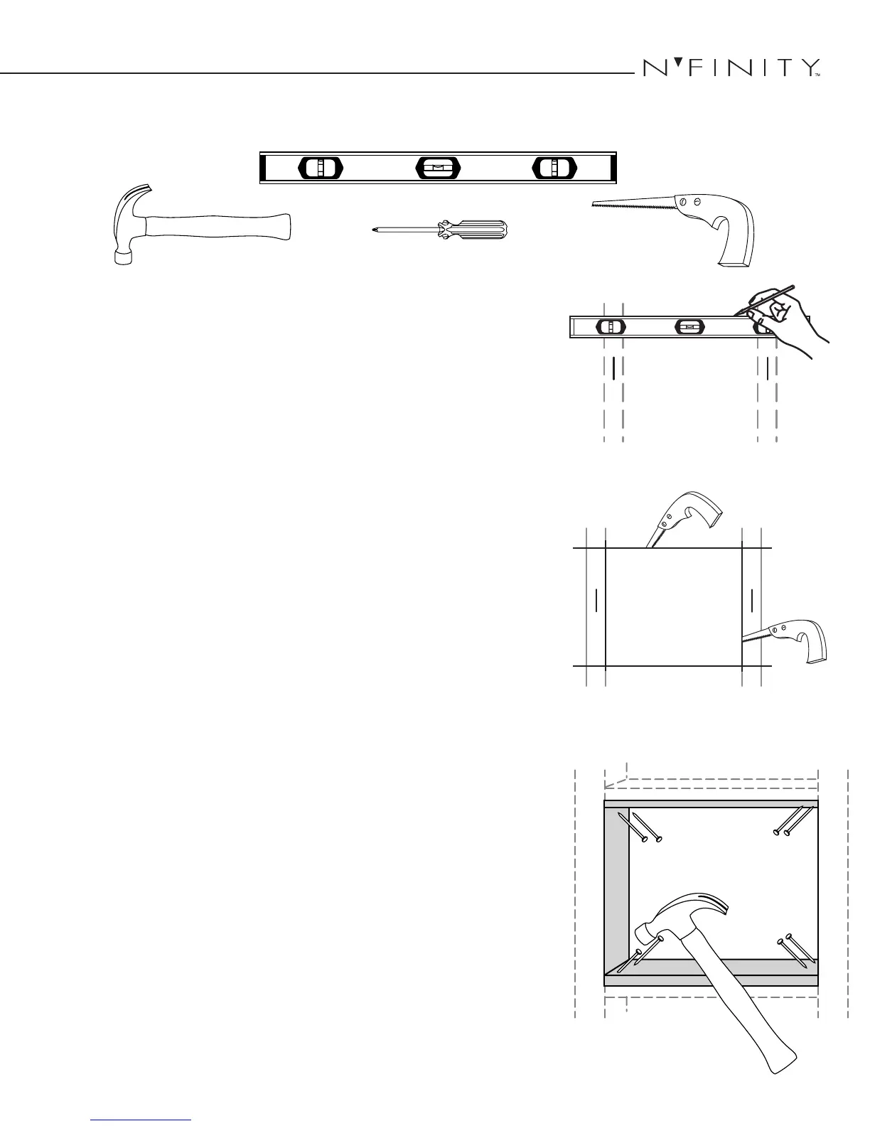 lower supports to the right and le studs, just inside the sheetrock. Make sure that