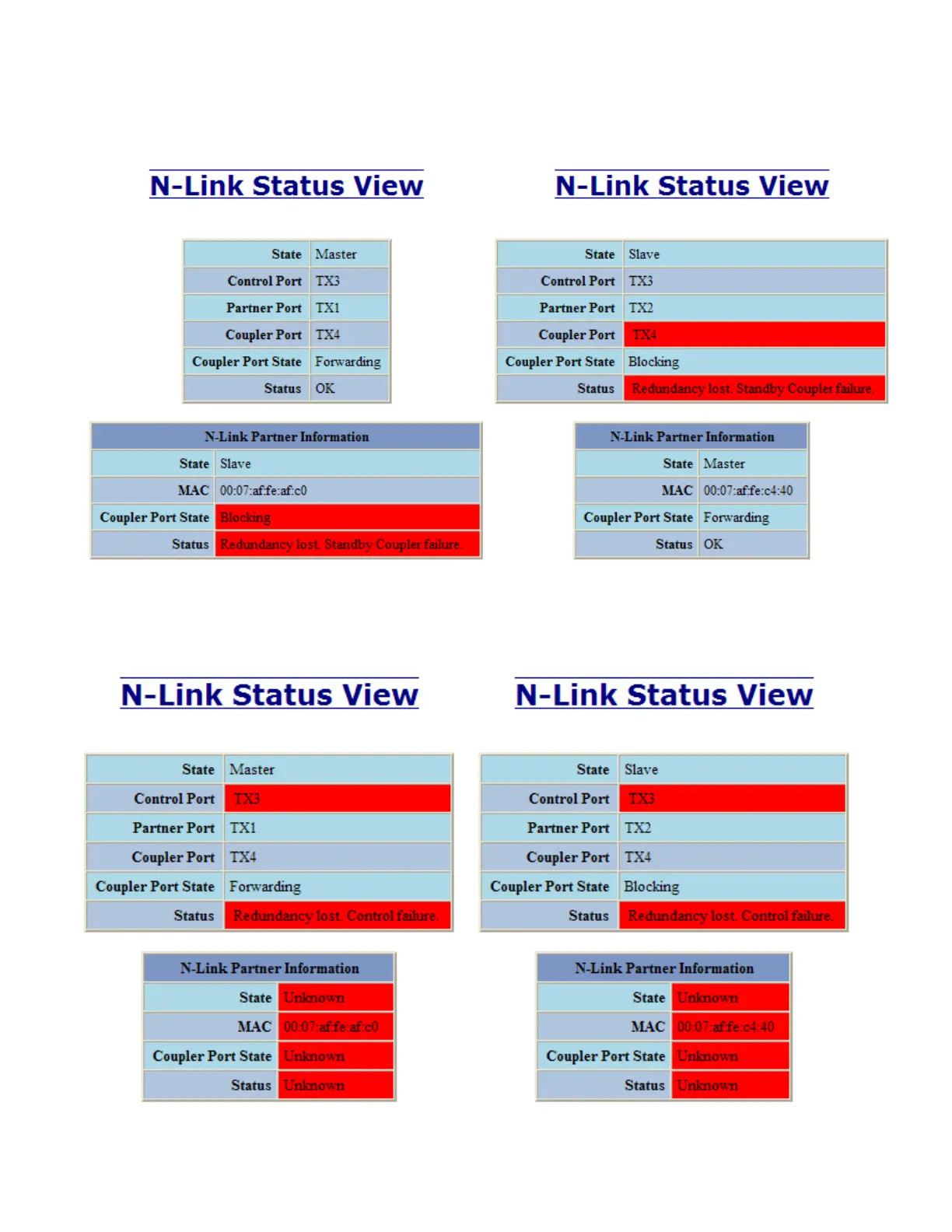 Below is an example of N-Link Status from an N-Link Master and Slave where the Standby Coupler link is