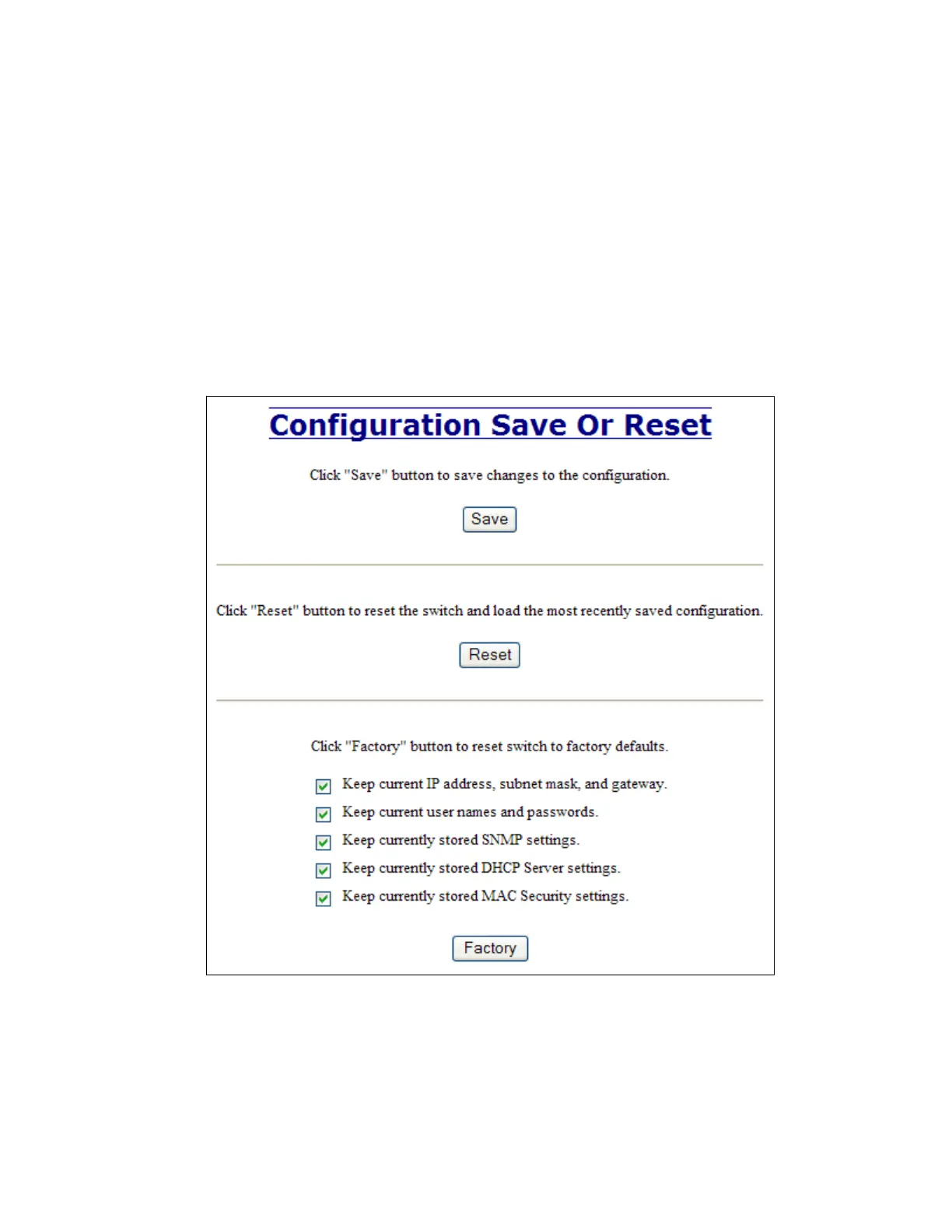 The “Reset” button will discard all unsaved changes, reset the switch and load the most recently saved