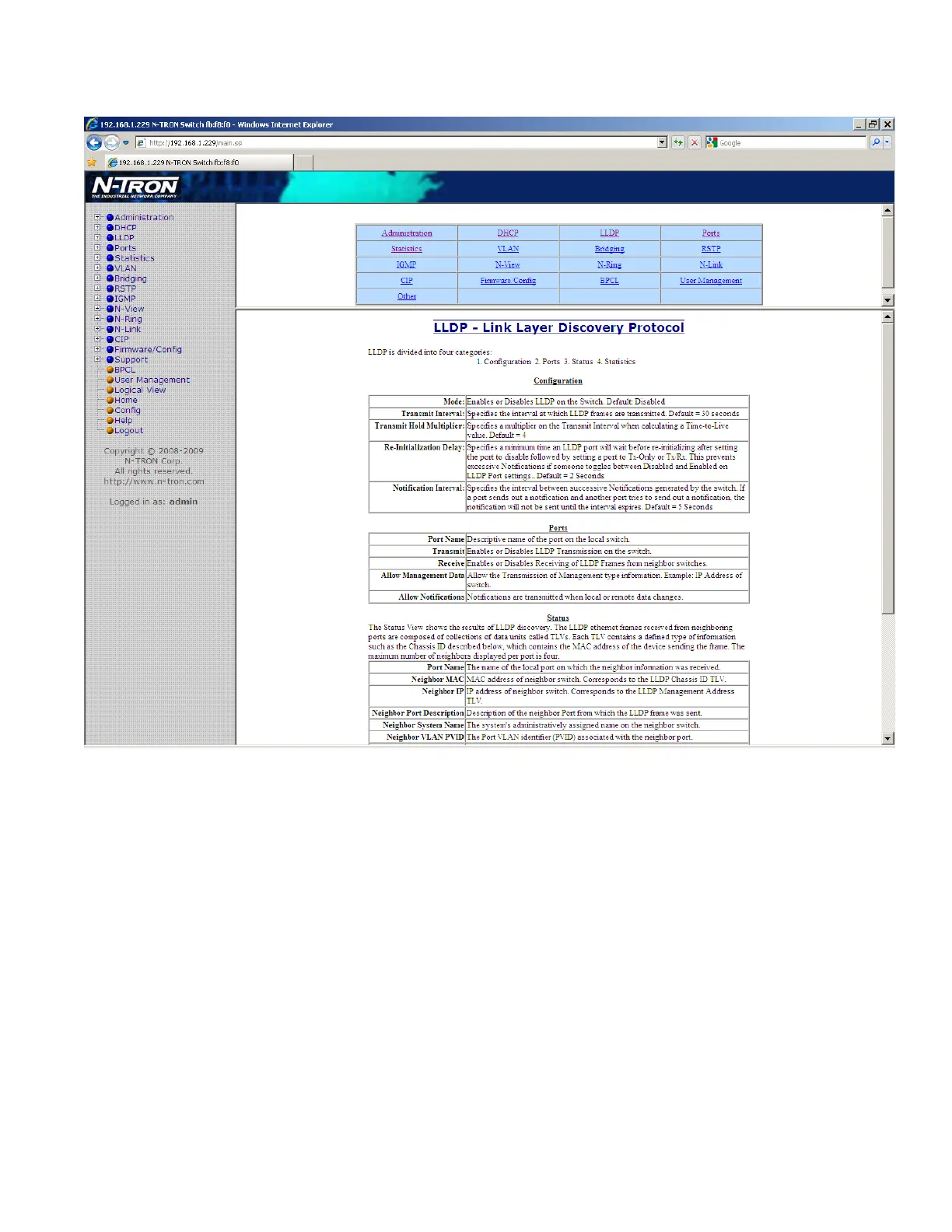 Following the LLDP link on the help page, the administrator or user can see some information regarding the