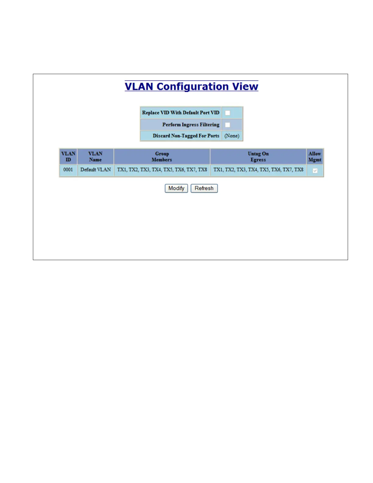 The screen capture below is the factory default VLAN configuration.