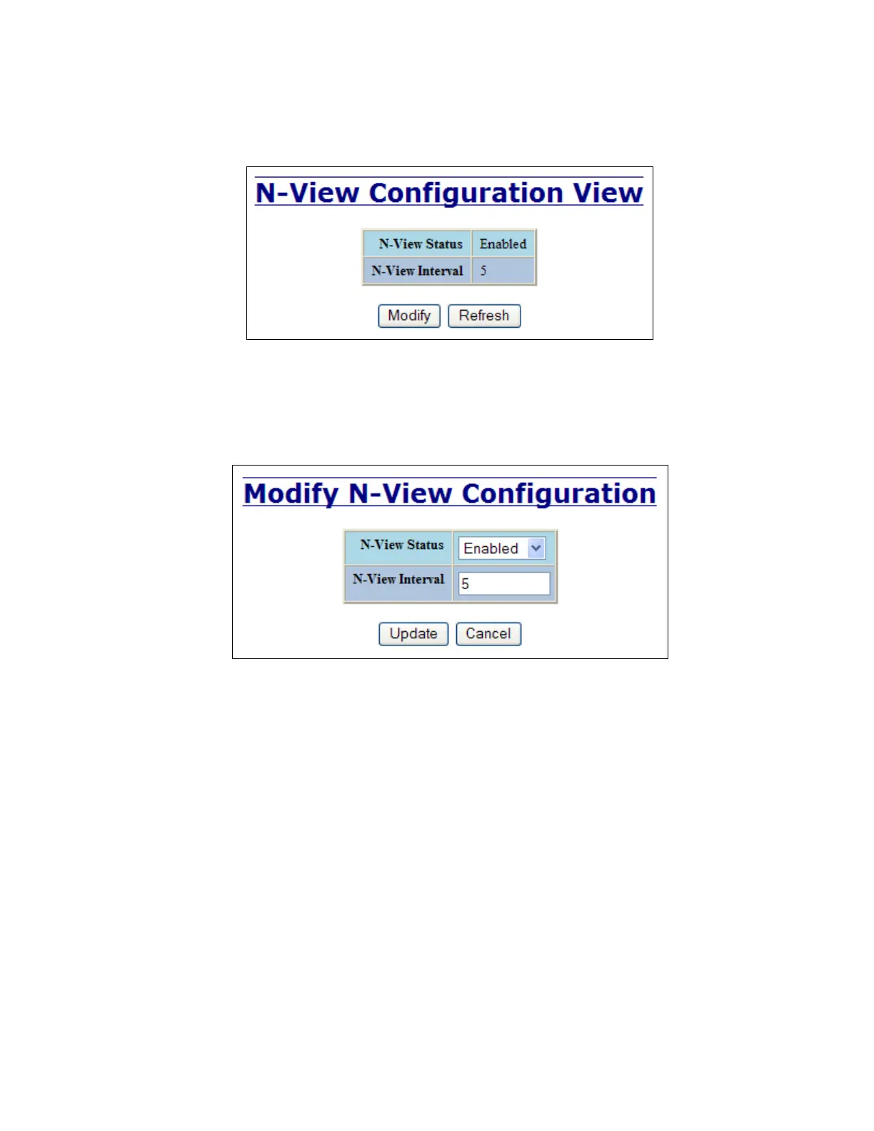 frequency with which N-View reports information. Increasing the interval will slow the update rate.