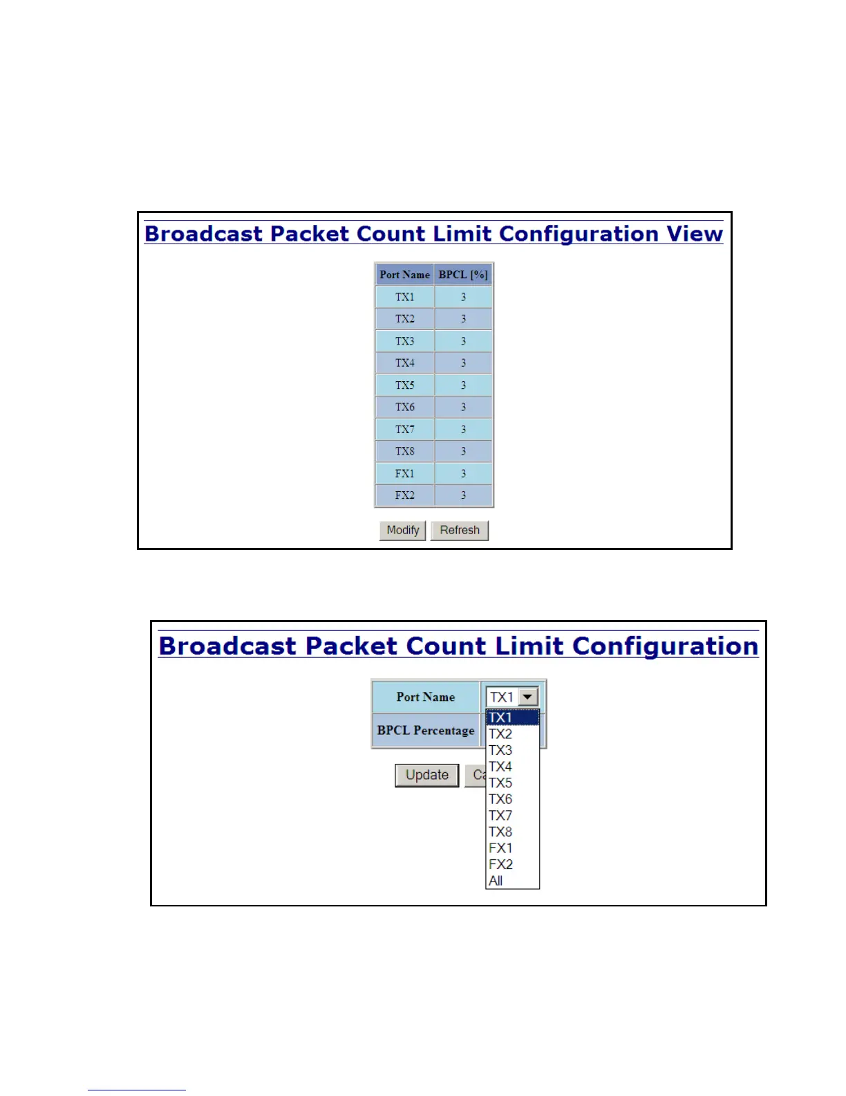 will list the Broadcast Pass Rate Percentage for each port. Broadcast Pass Rate Percentage defaults to 3%