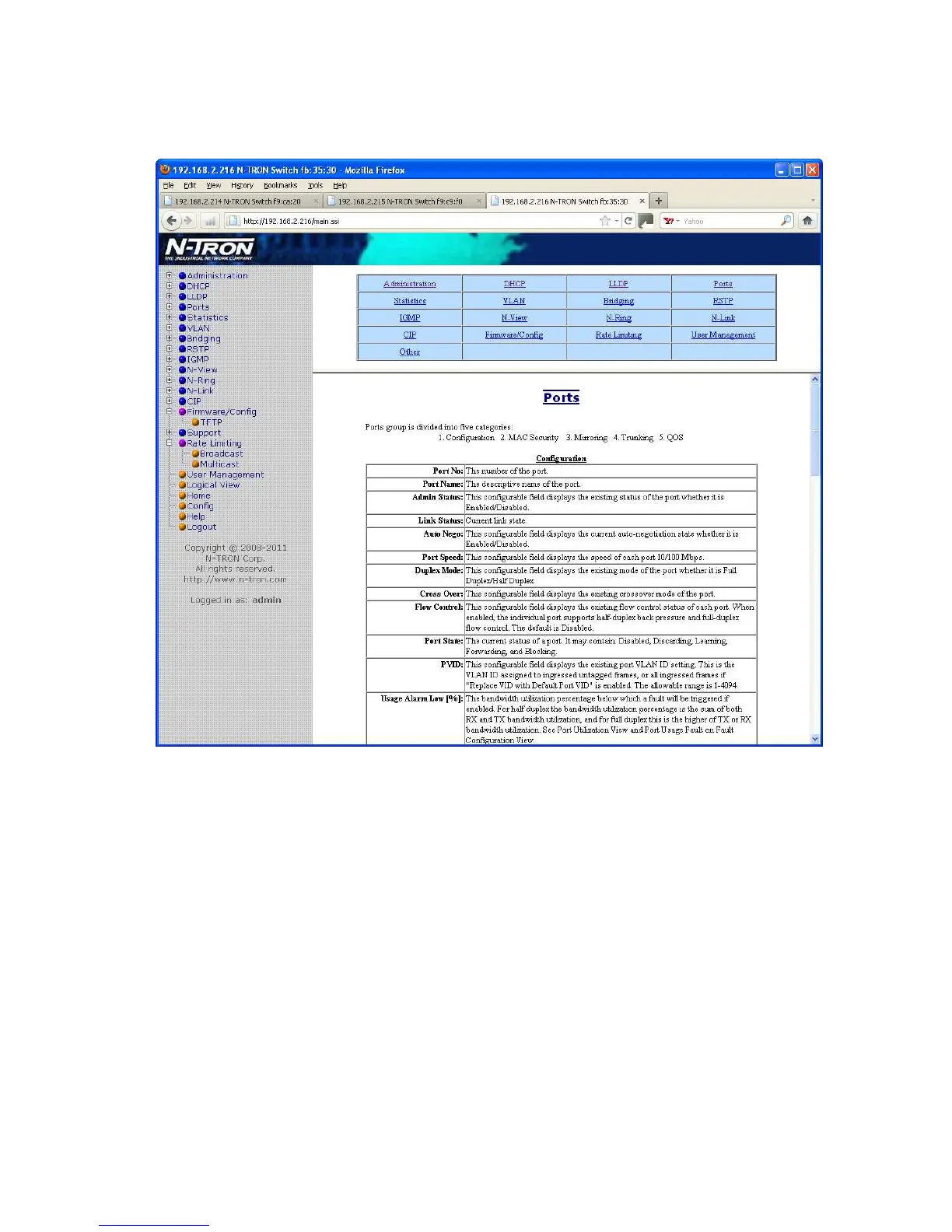 Following the Ports link on the help page, the administrator or user can see some information regarding the