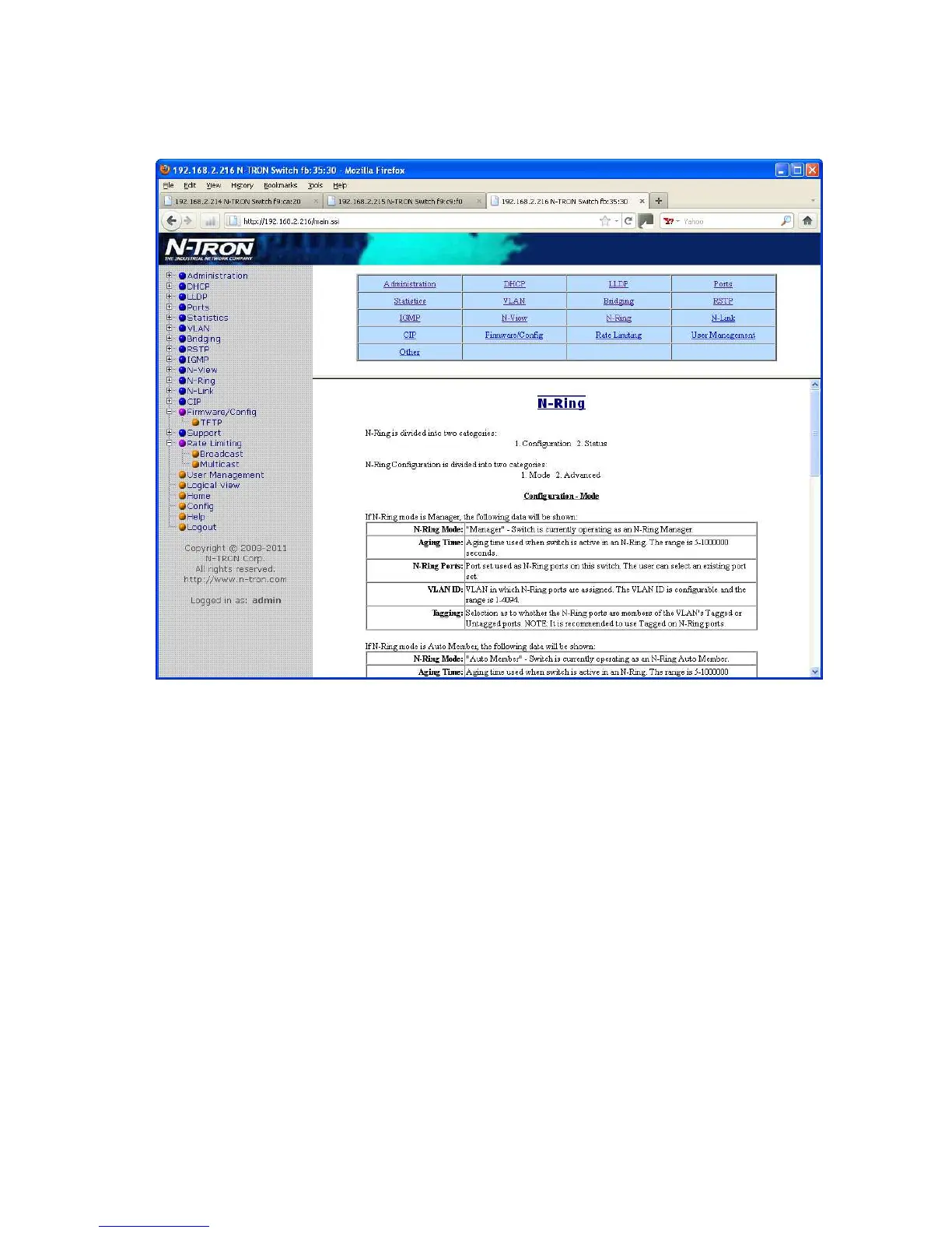 the configuration options in the N-Ring category on the left side of the web management.