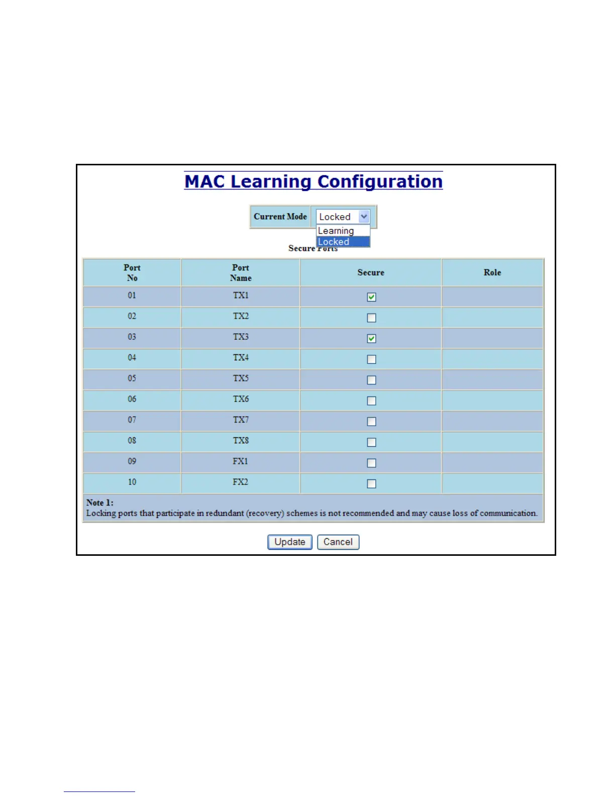 section below). Transitioning from ‘Locked’ to ‘Learning’, clears the ARL for all ports.