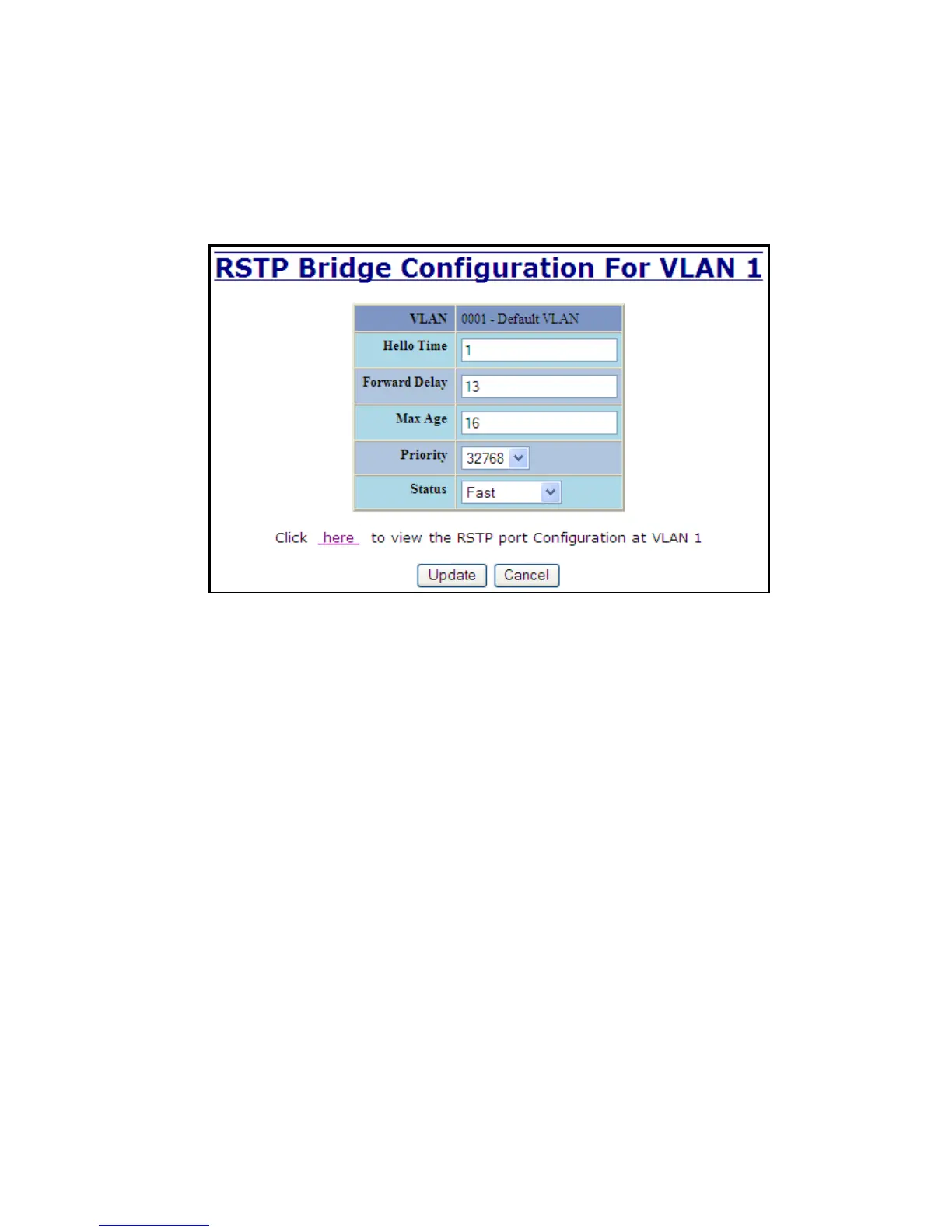that VLAN by clicking on the ‘here’ link to view RSTP Port Configuration at VLAN#.