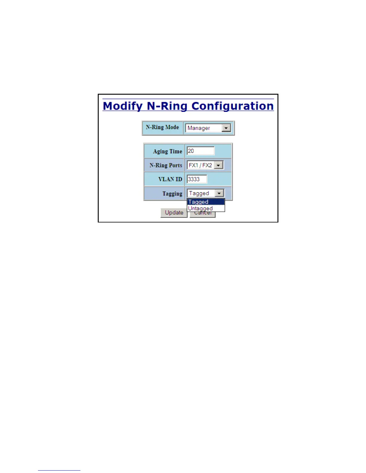 If N-Ring Mode is “Manager”, then a pull-down allows selection as to whether the N-Ring ports are