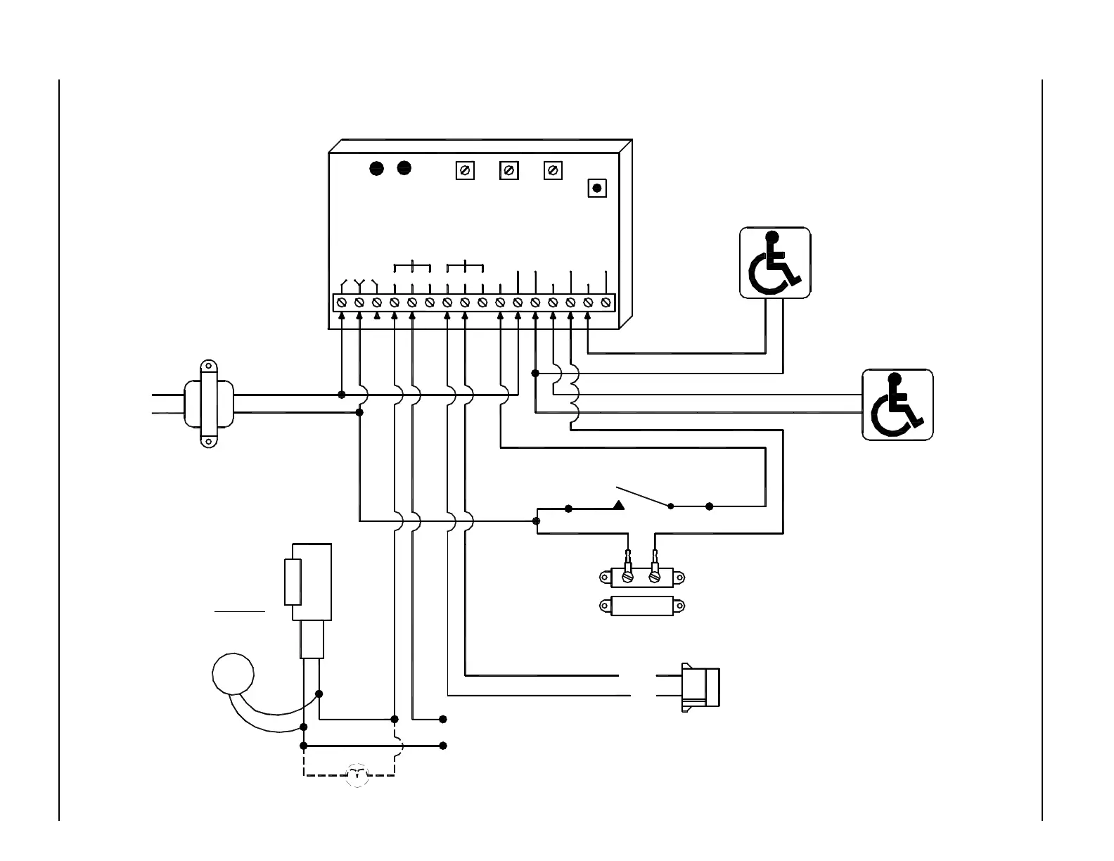 Connect to COM and N.O. terminals on switch.