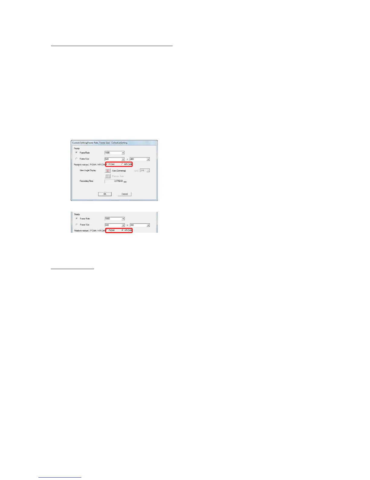 If changing the frame size with the HR-CAM, the P-CAM frame size automatically becomes ½