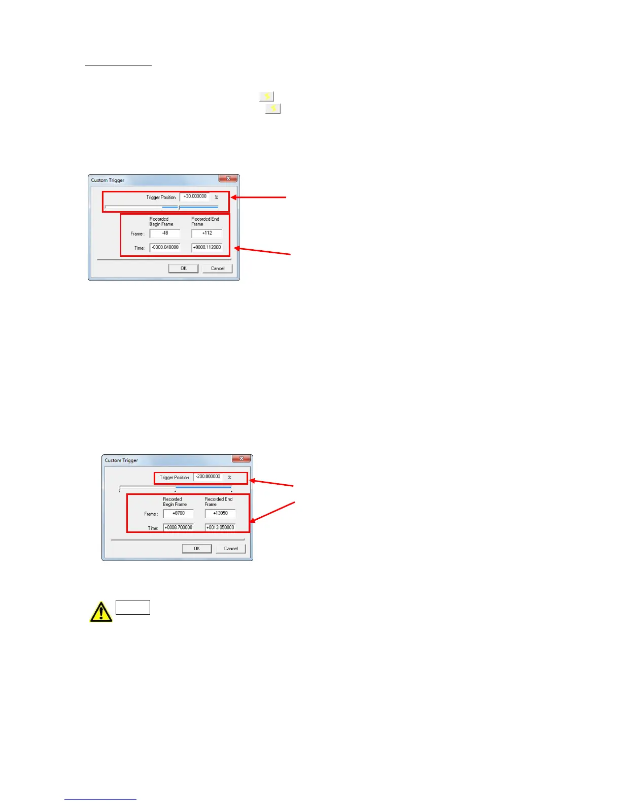 confirm the recording range with the “Custom Trigger” dialogue and correct to the