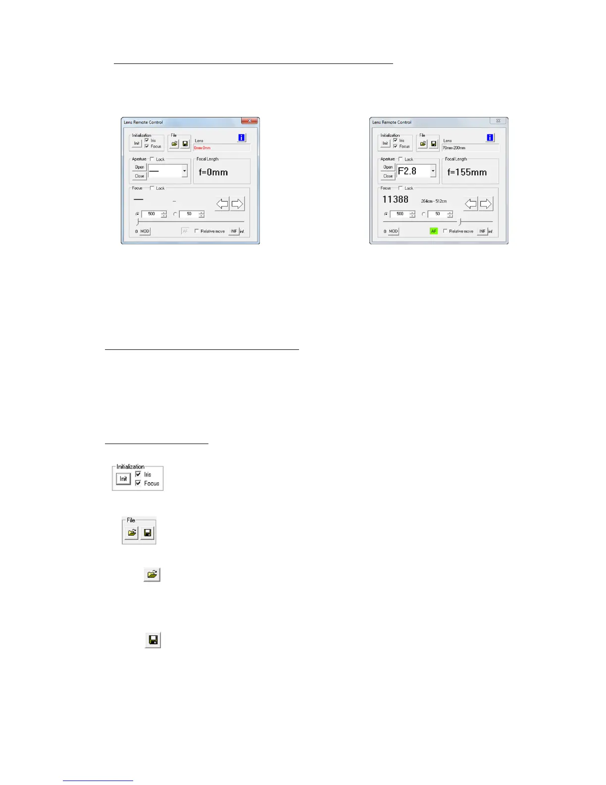 When operating the lens from HXLink, first initialize the aperture and focus.