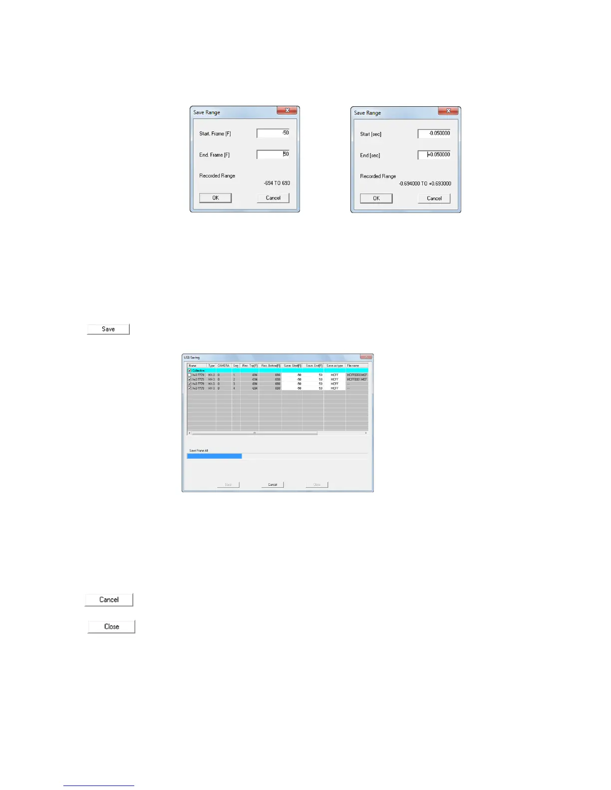 Each button in the "Save to USB" dialogue functions as follows.