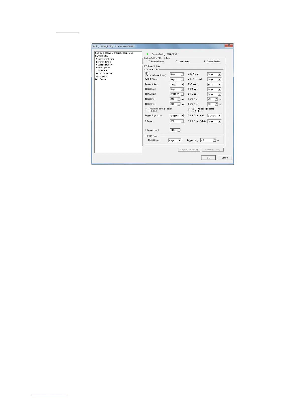 Sets the HX GX and Q cameras and ULTRA Cam input/output signals.