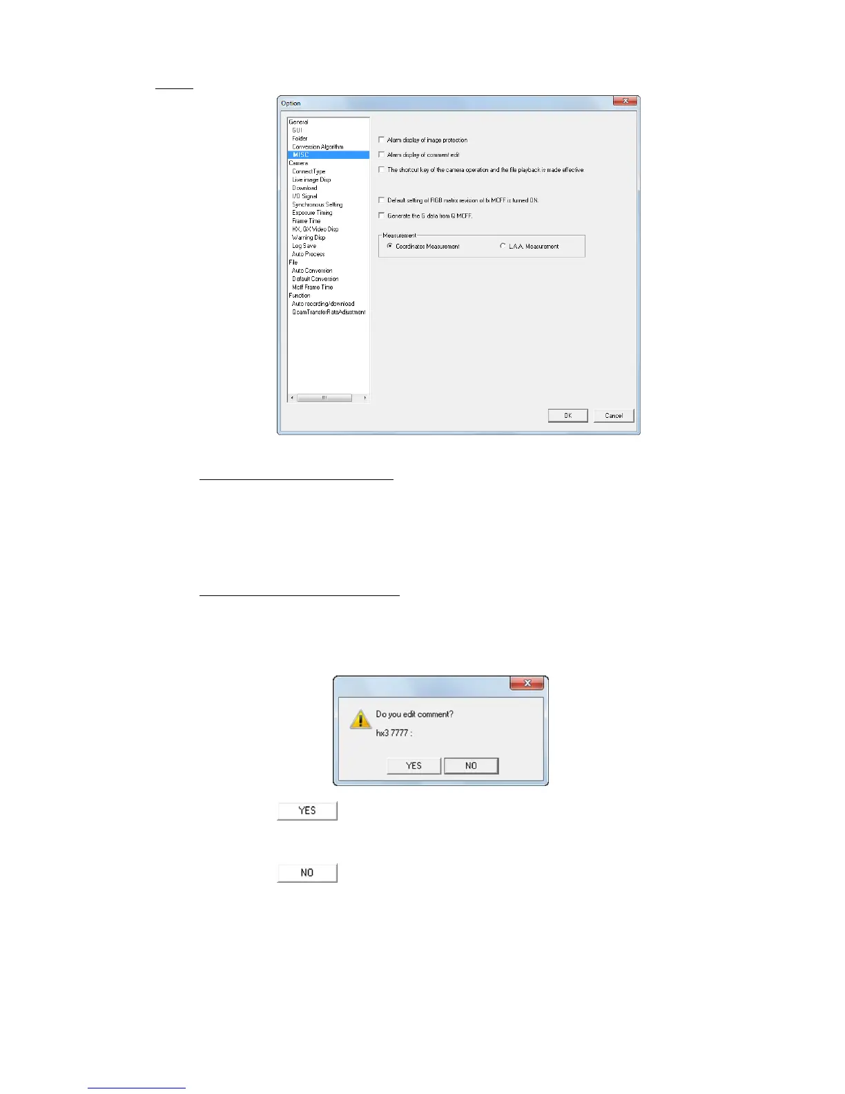 Camera Options” window with all of the camera image comments that can be edited. After