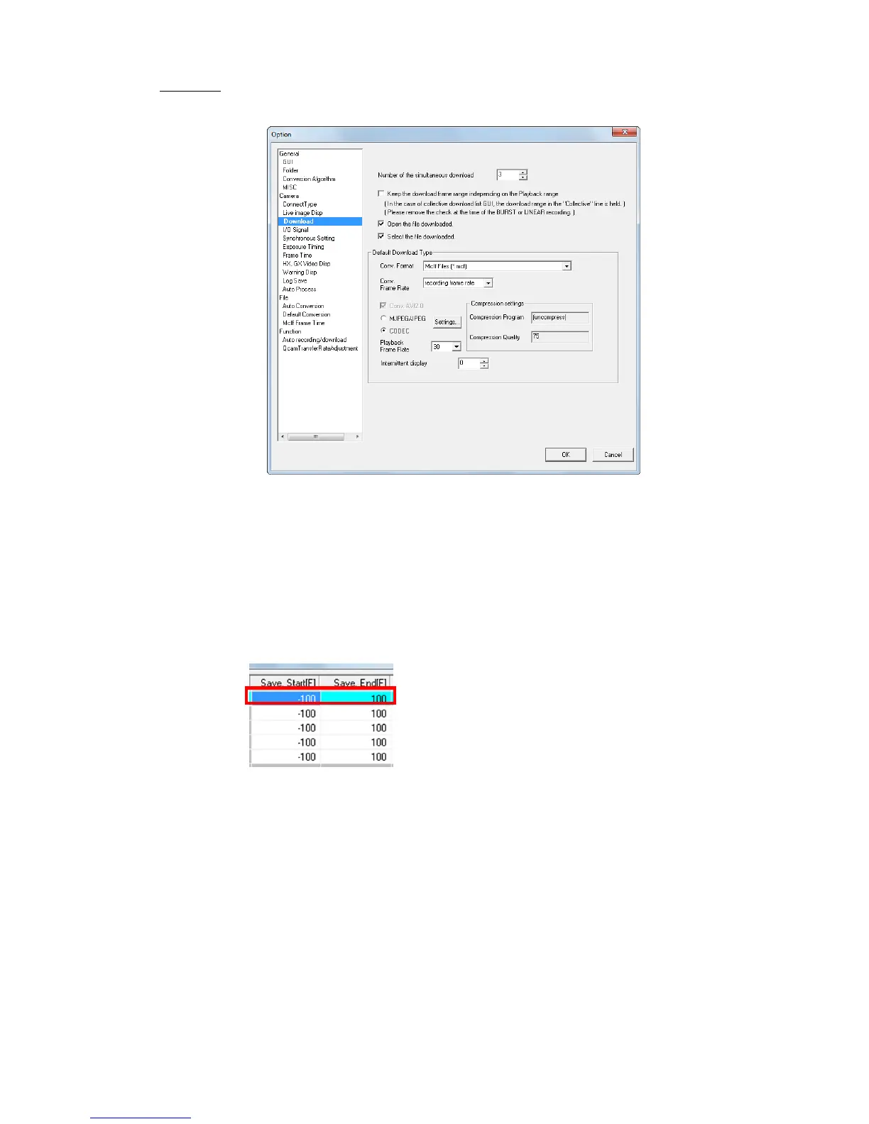 Conversion Format Specifies the type of downloaded file (AVI, TIFF, JPEG, BMP,