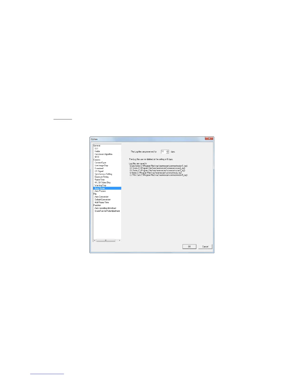 Sets the number of days to save the communication log files between the cameras and the PC.