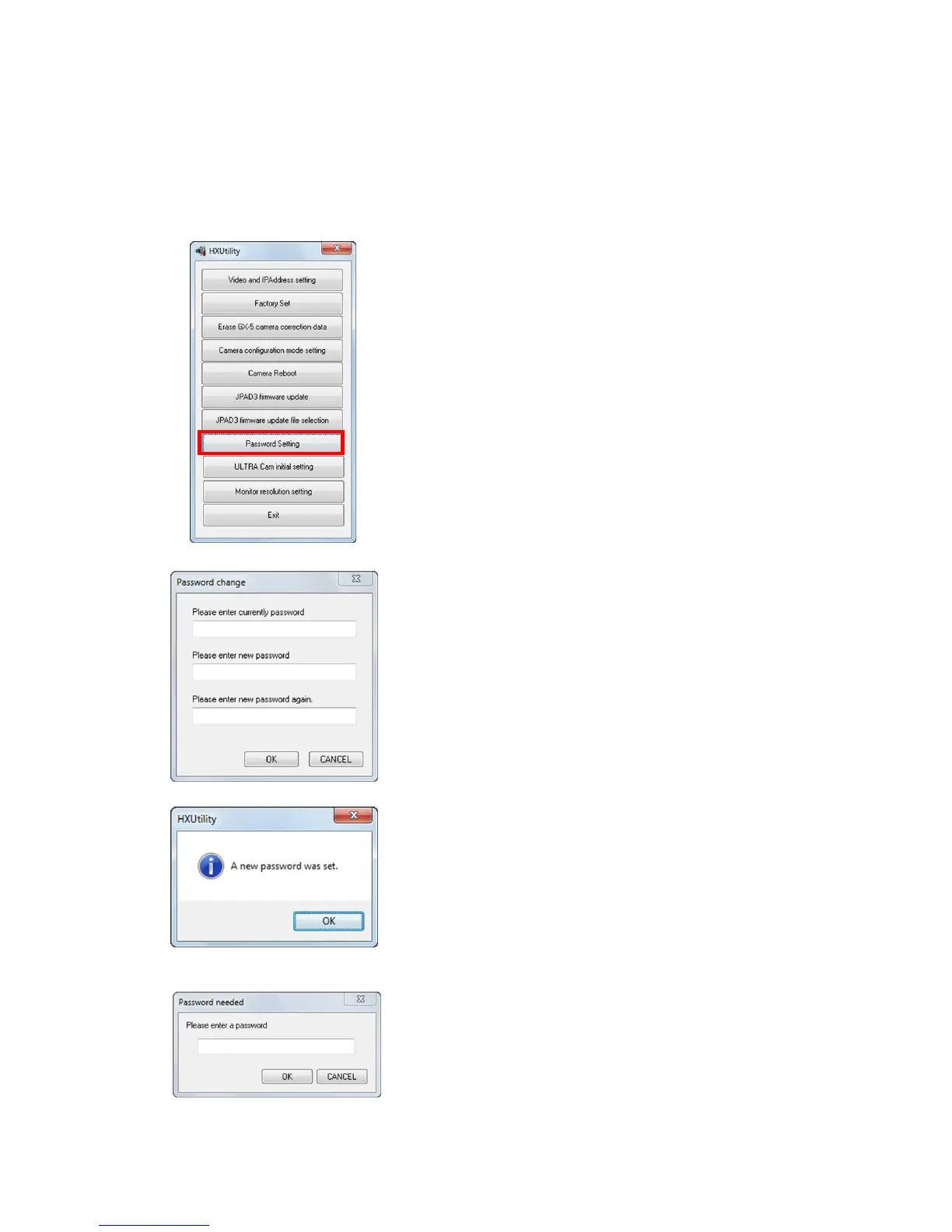 Set a password on the HXUtility to prevent changes to the camera settings due to erroneous operation.