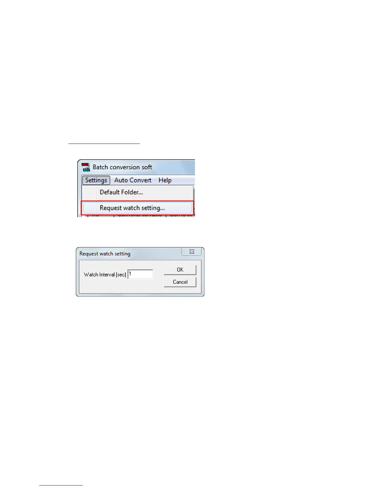 2) In the “Set Conversion File Monitor Time Interval (sec)” dialogue shown, specify the interval