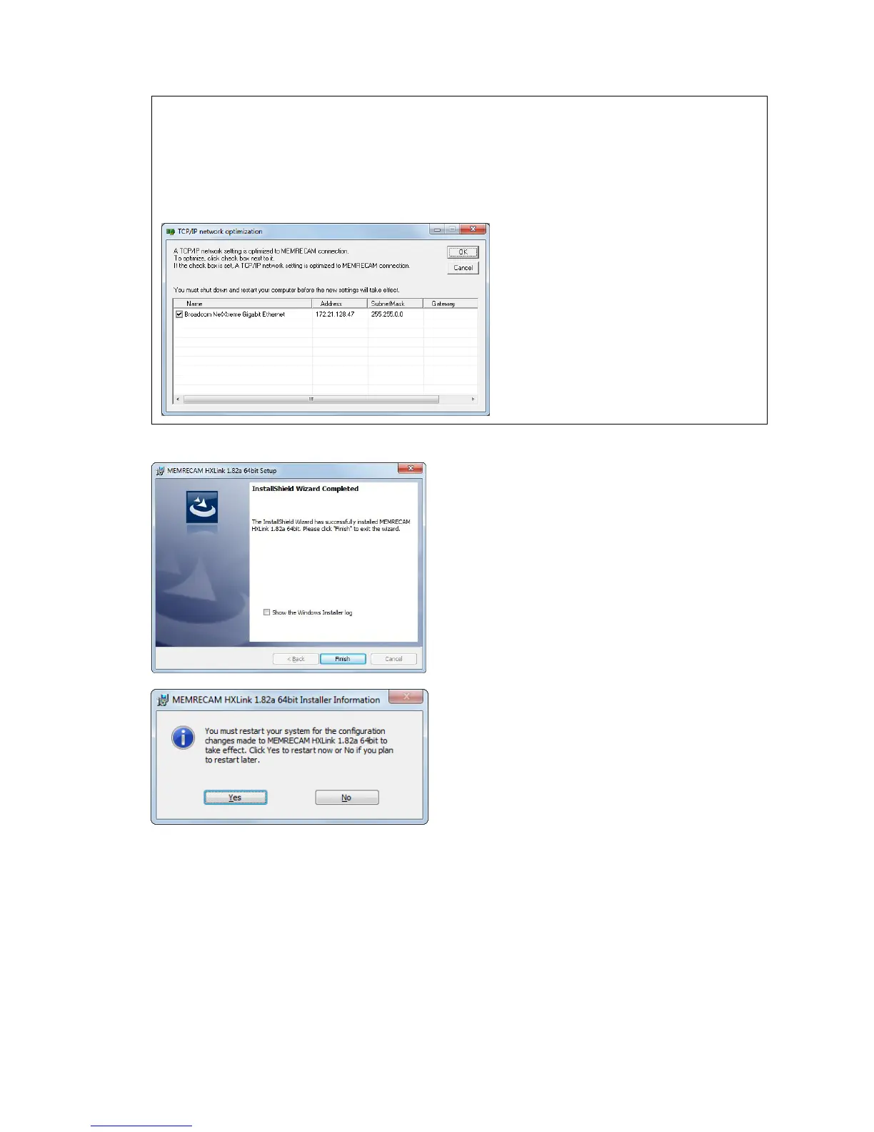 MEMRECAM, there will be message indicating "TCP/IP Network Optimization" required when