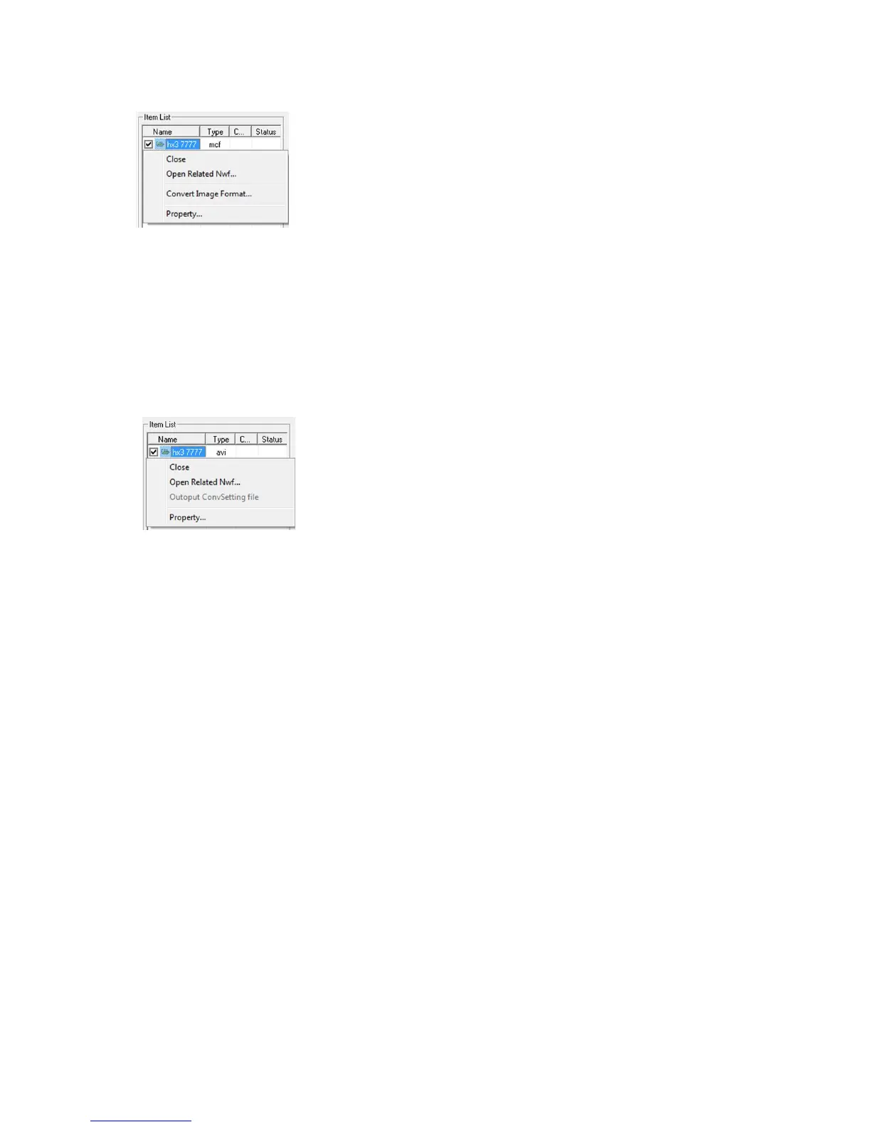 AVI/TIFF/BMP/JPEG File Item Menu