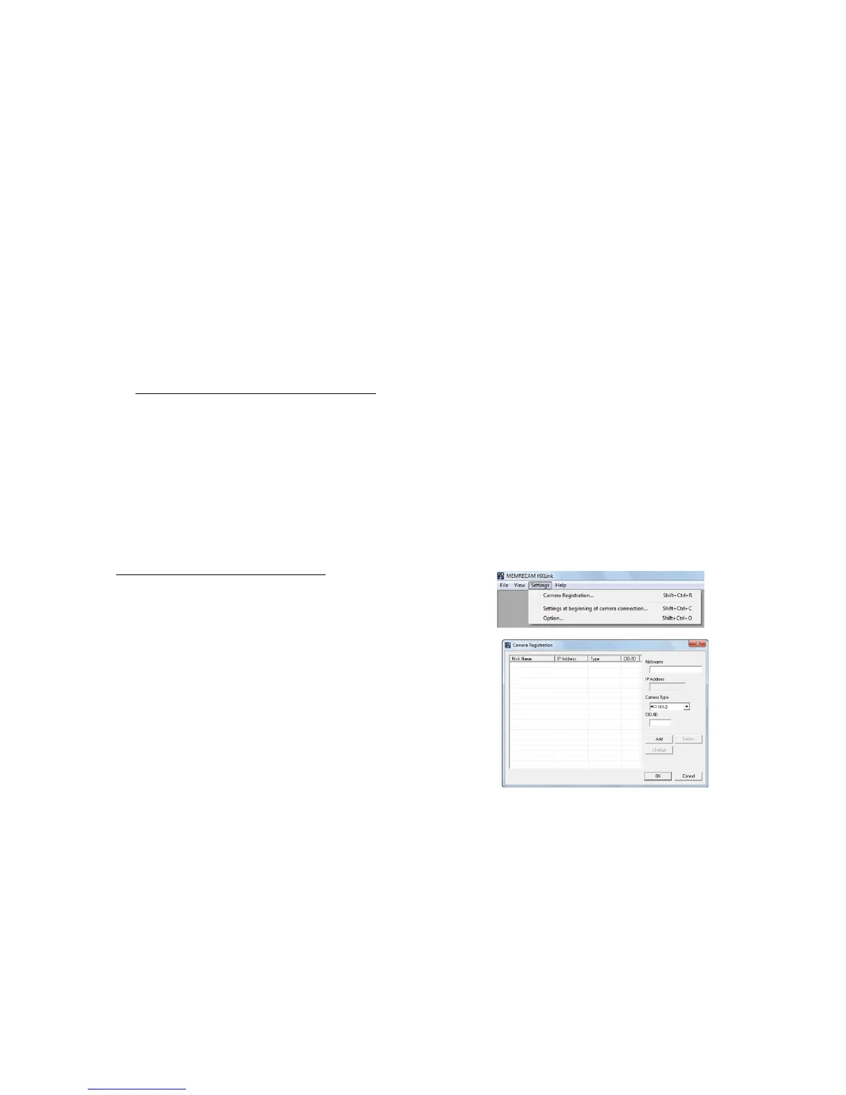 With HXLink, it is not necessary to register cameras to control the MEMRECAM HX, GX, Q