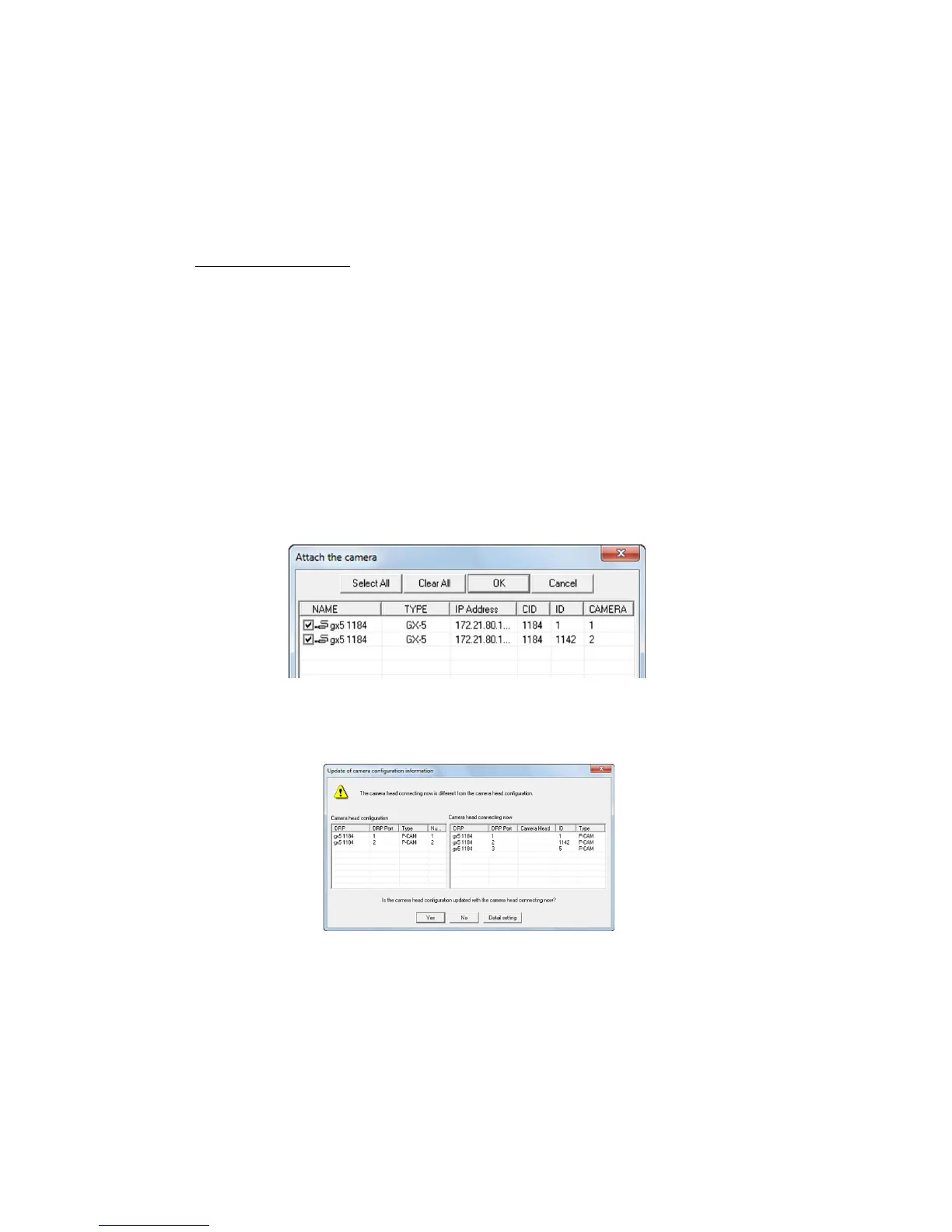 6) Click "Yes" to set the camera head configuration.