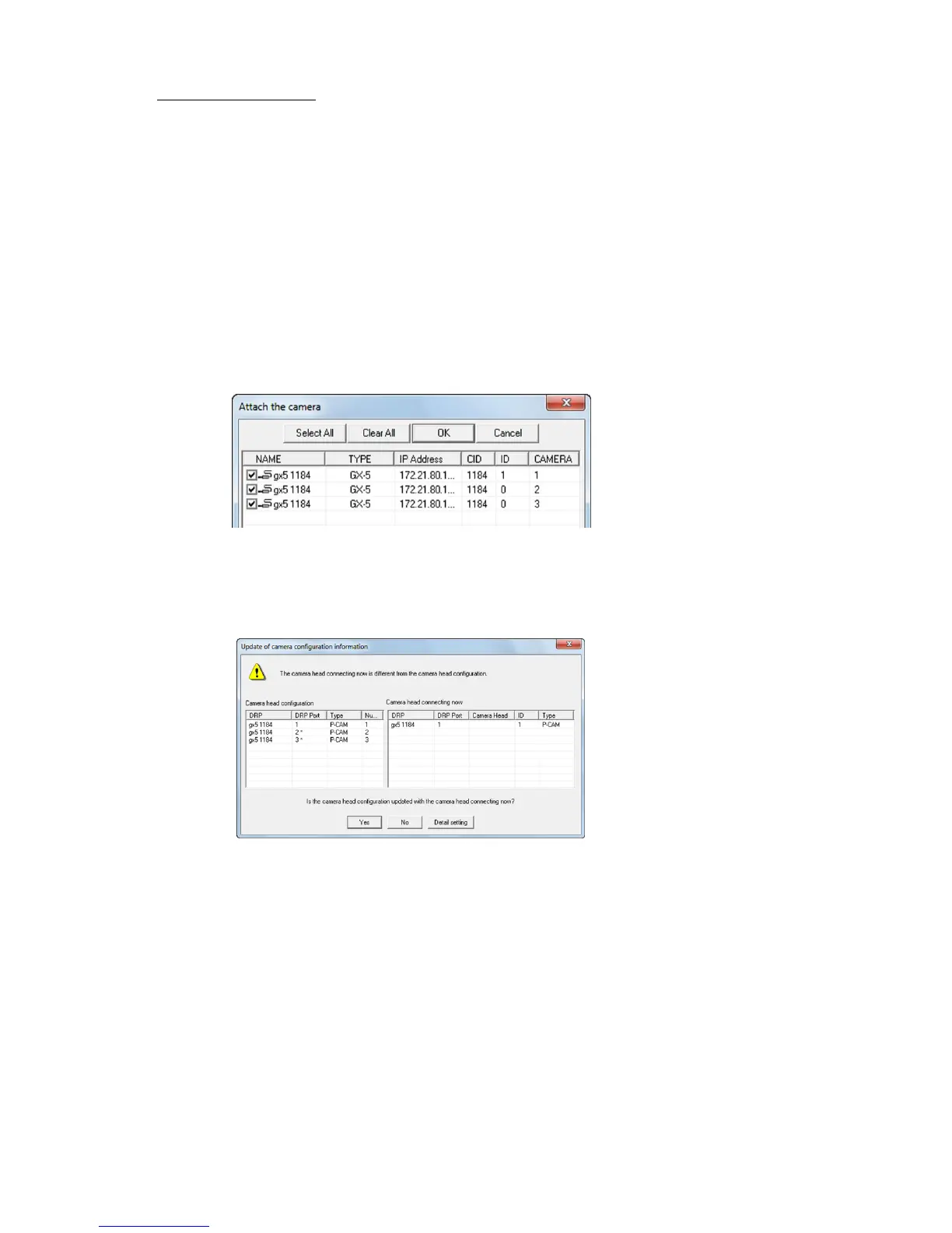 4) Select the DRP for the camera head deleted from the list in the following "Connect