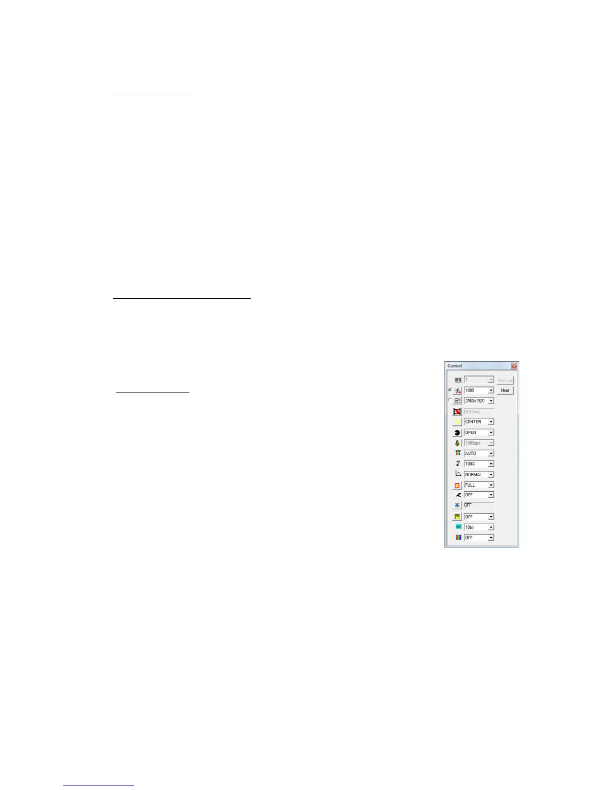 white balance, chroma, gain, AOI, AE, image trigger, DRES mode, pixel